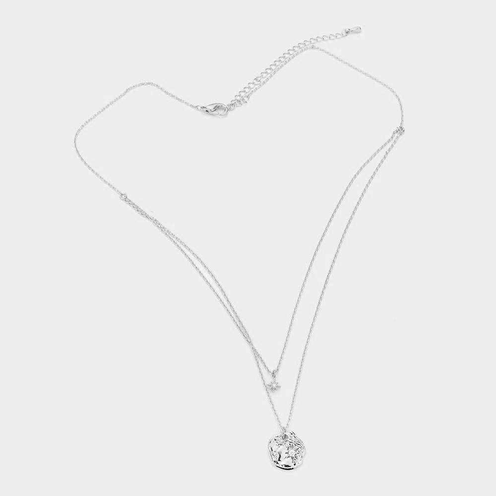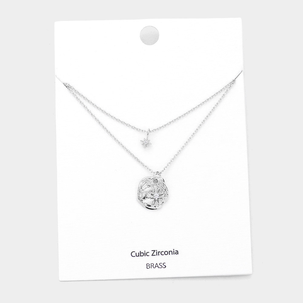 CZ Embellished Brass Metal North Star Pendant Double Layered Necklace