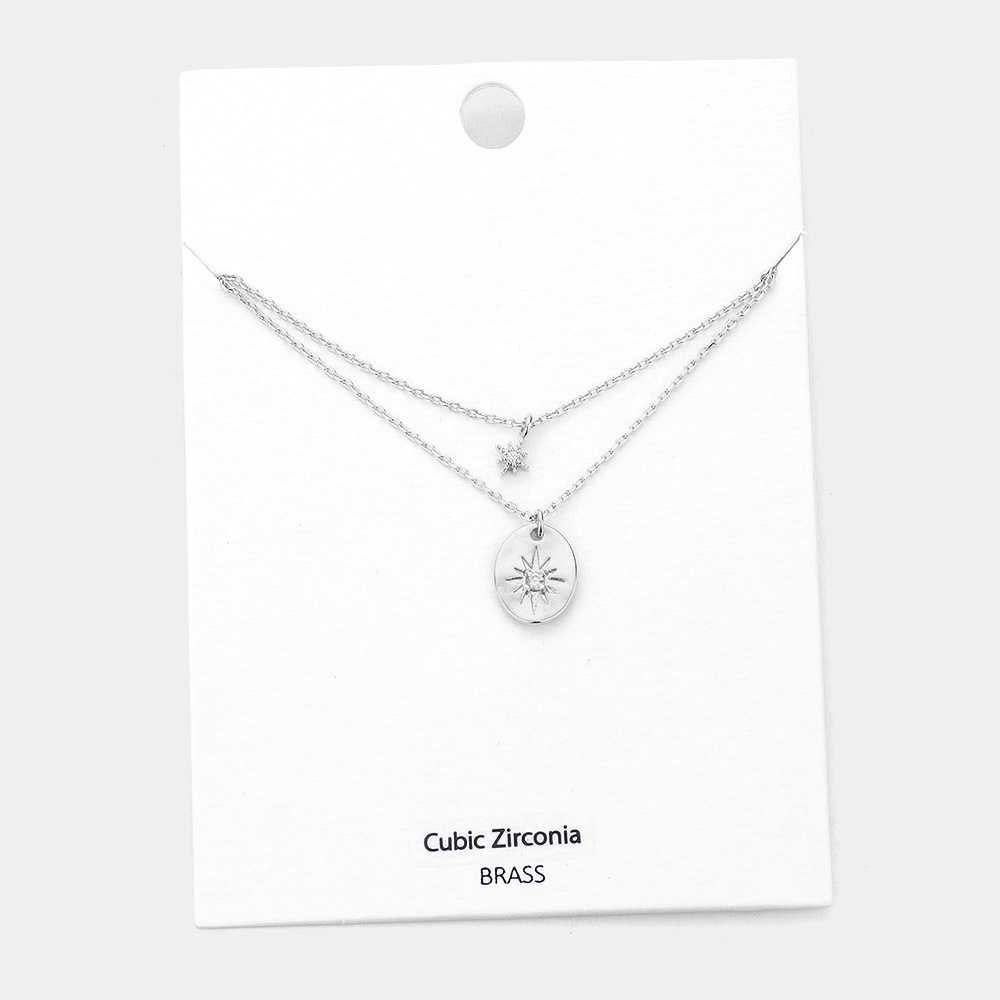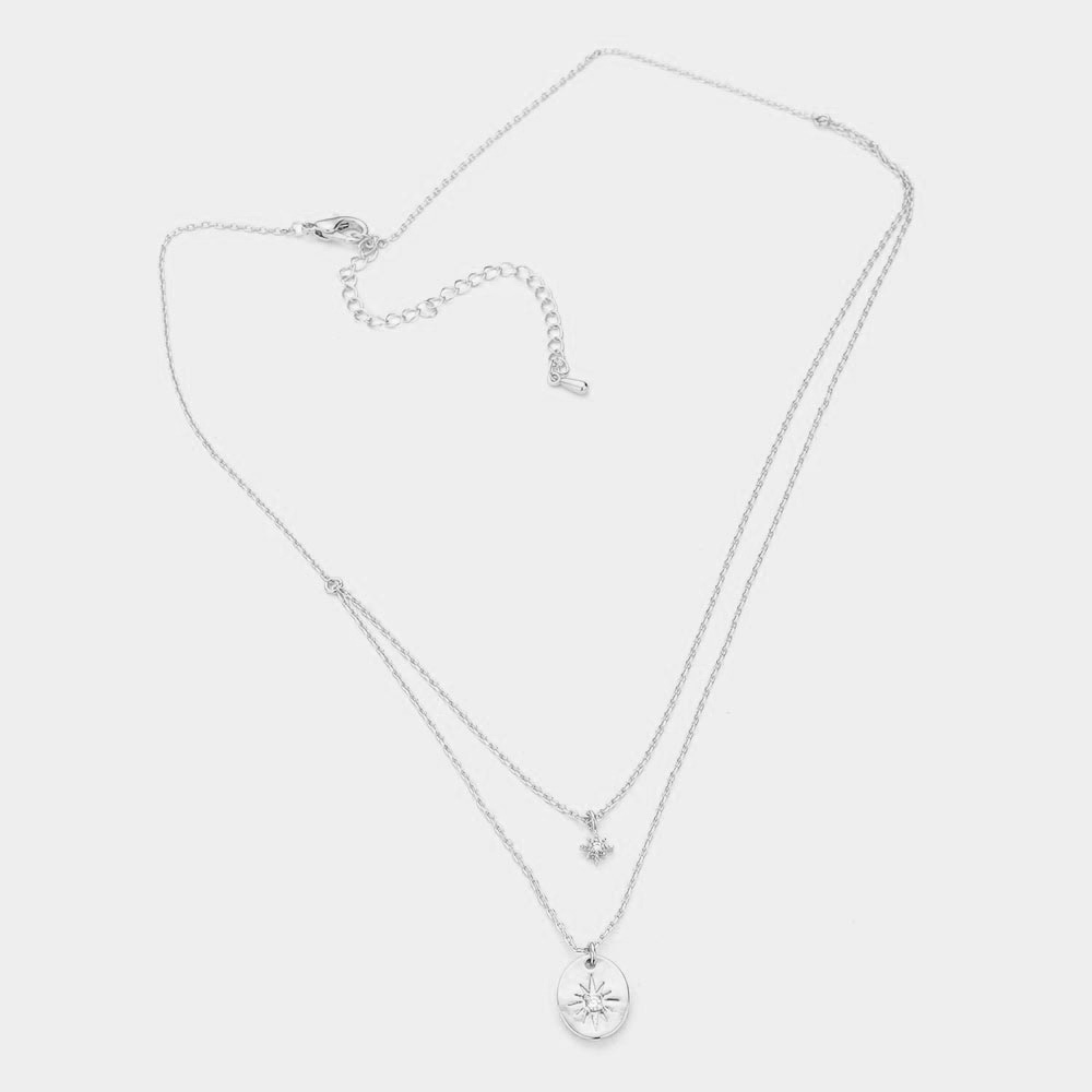 CZ Embellished Brass Metal North Star Pendant Double Layered Necklace