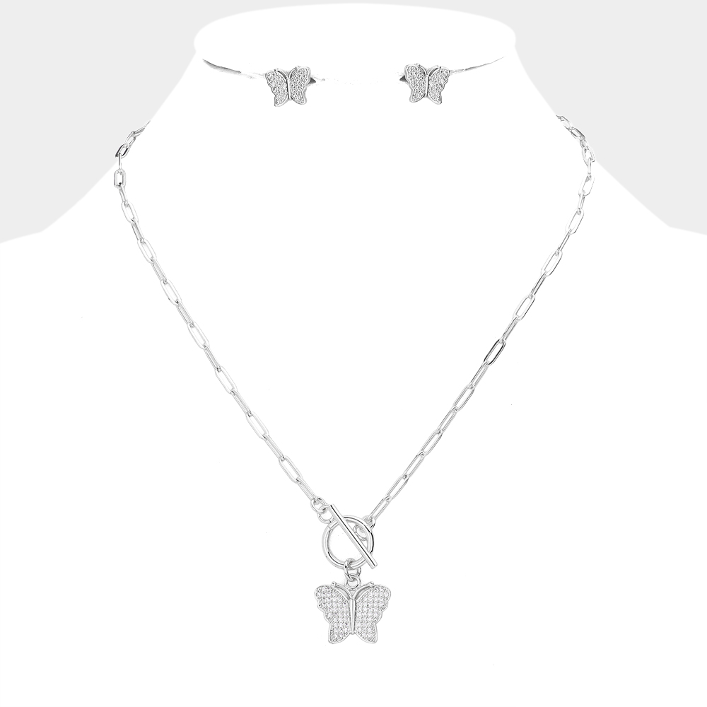 CZ Embellished Butterfly Pendant Toggle Necklace