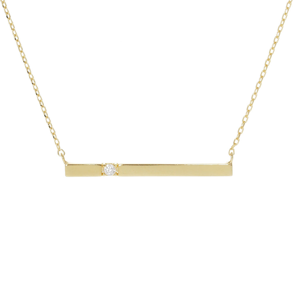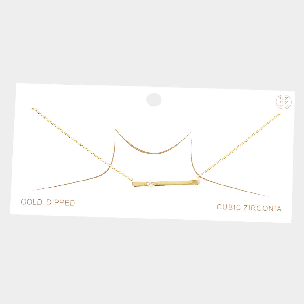 CZ Embellished Gold Dipped Metal Bar Pendant Necklace