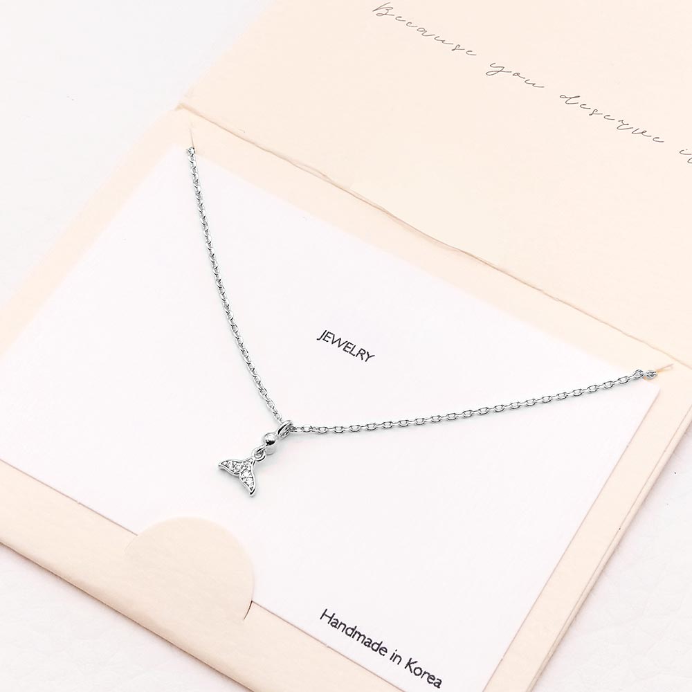 CZ Embellished Whale Tail Pendant Necklace