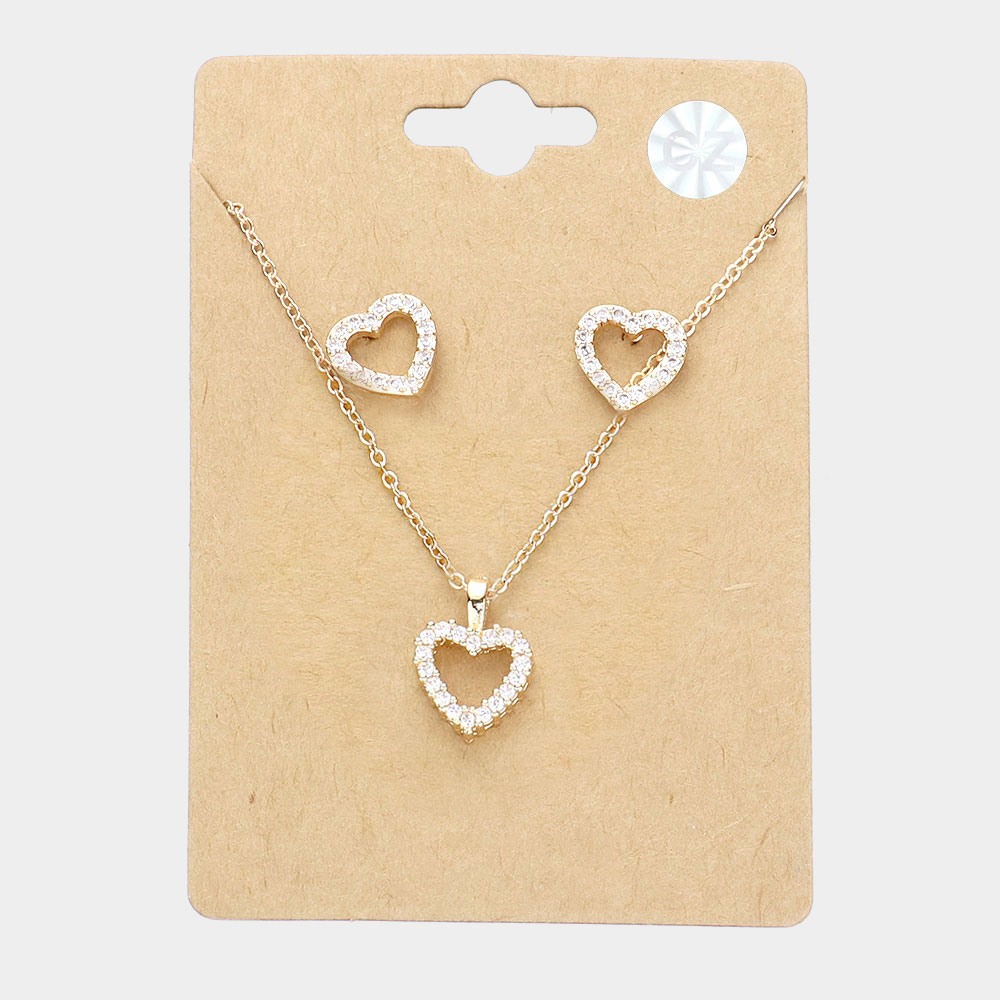 Gold Dipped CZ Stone Paved Heart Stud Earrings