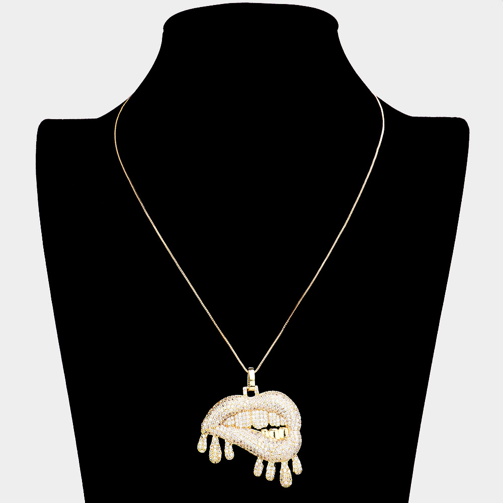 CZ Lips Pendant Necklace