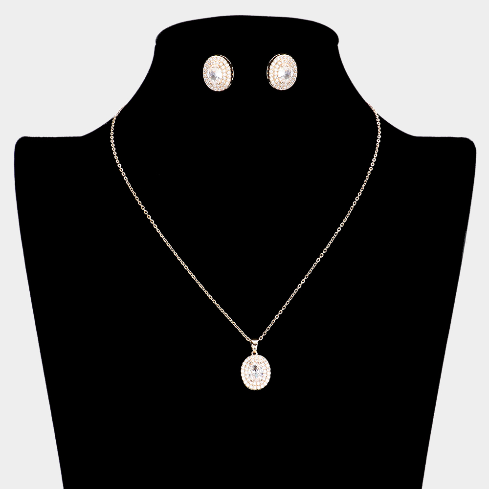 Marquise Stone Accented Rhinestone Paved Jewelry Set