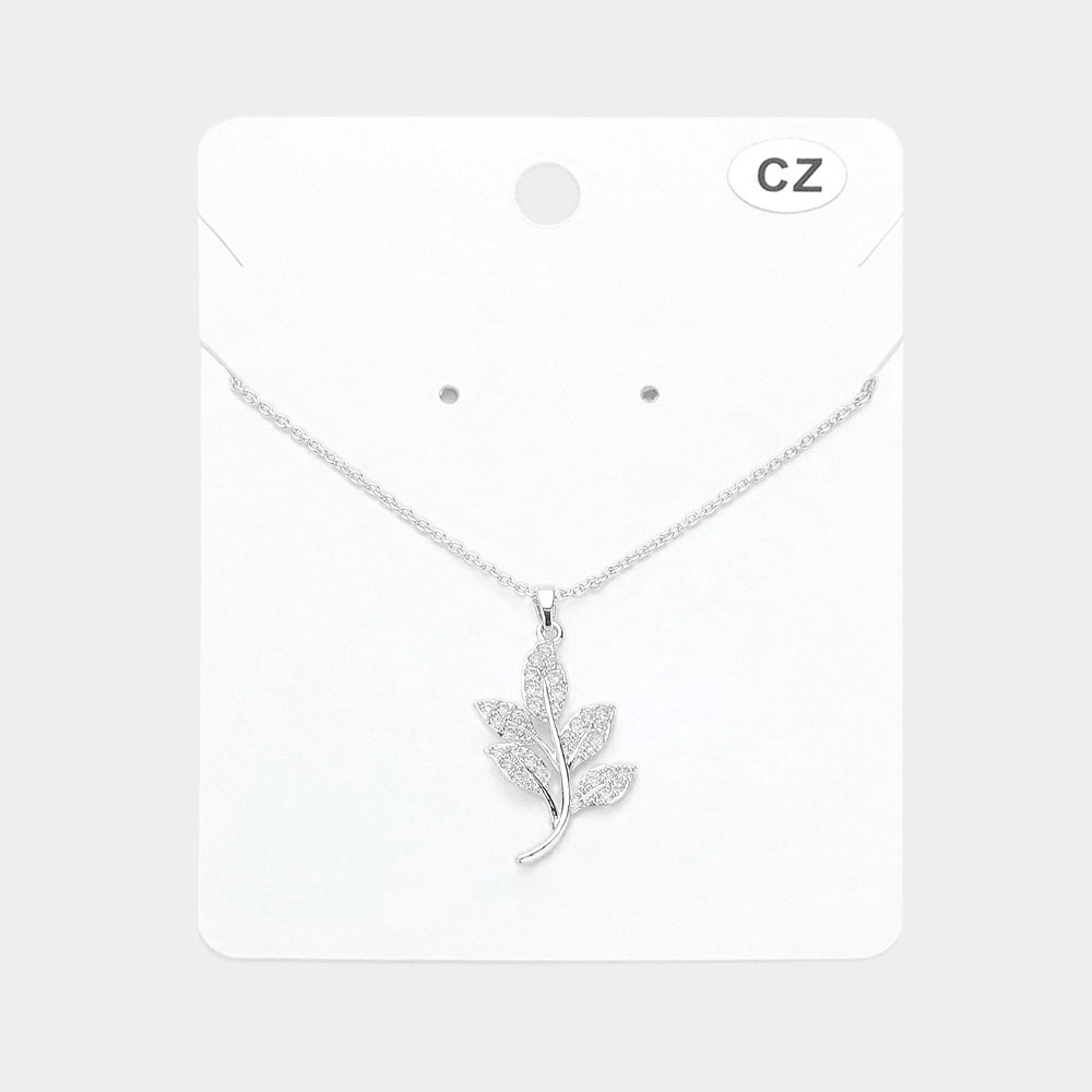 18K Gold Filled CZ Stone Paved Leaf Pendant Necklace