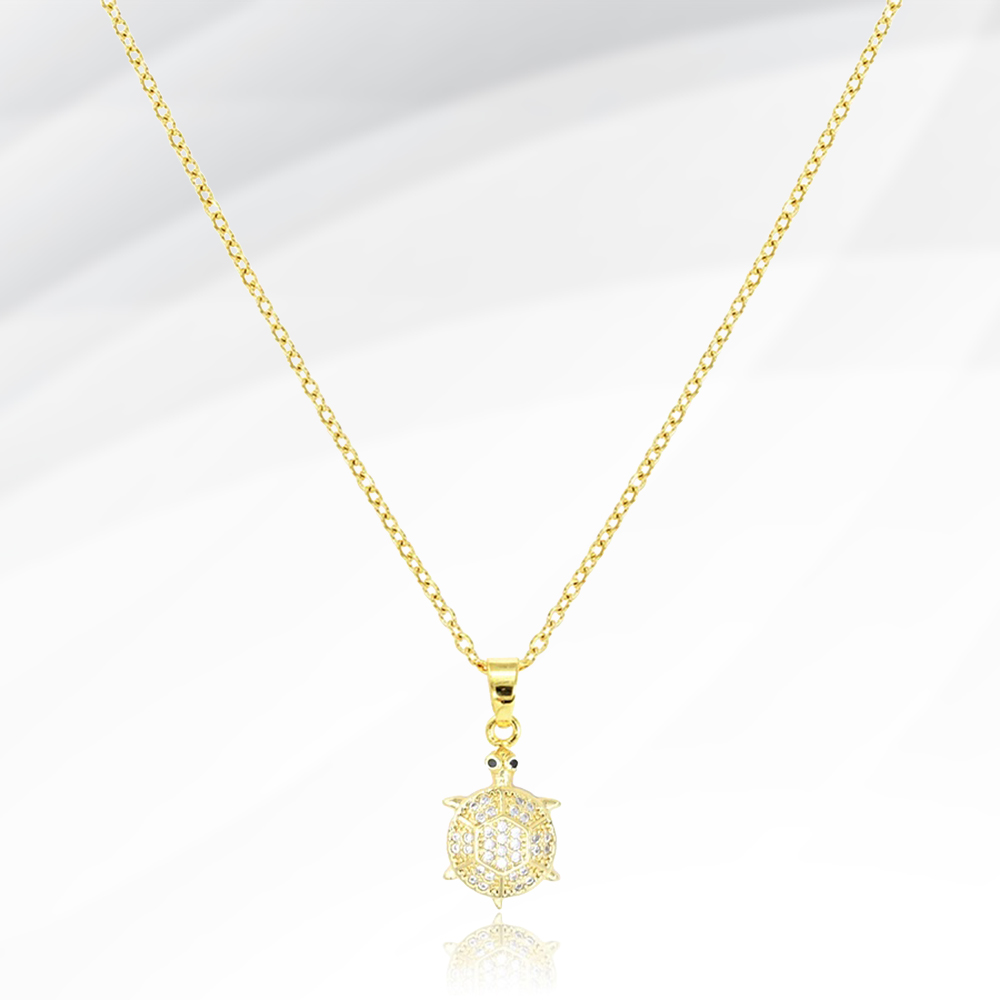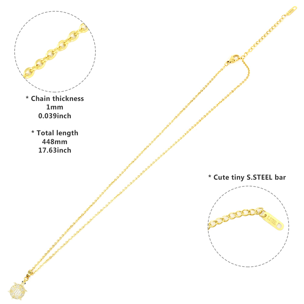 CZ Stone Paved Turtle Pendant Stainless Steel Necklace