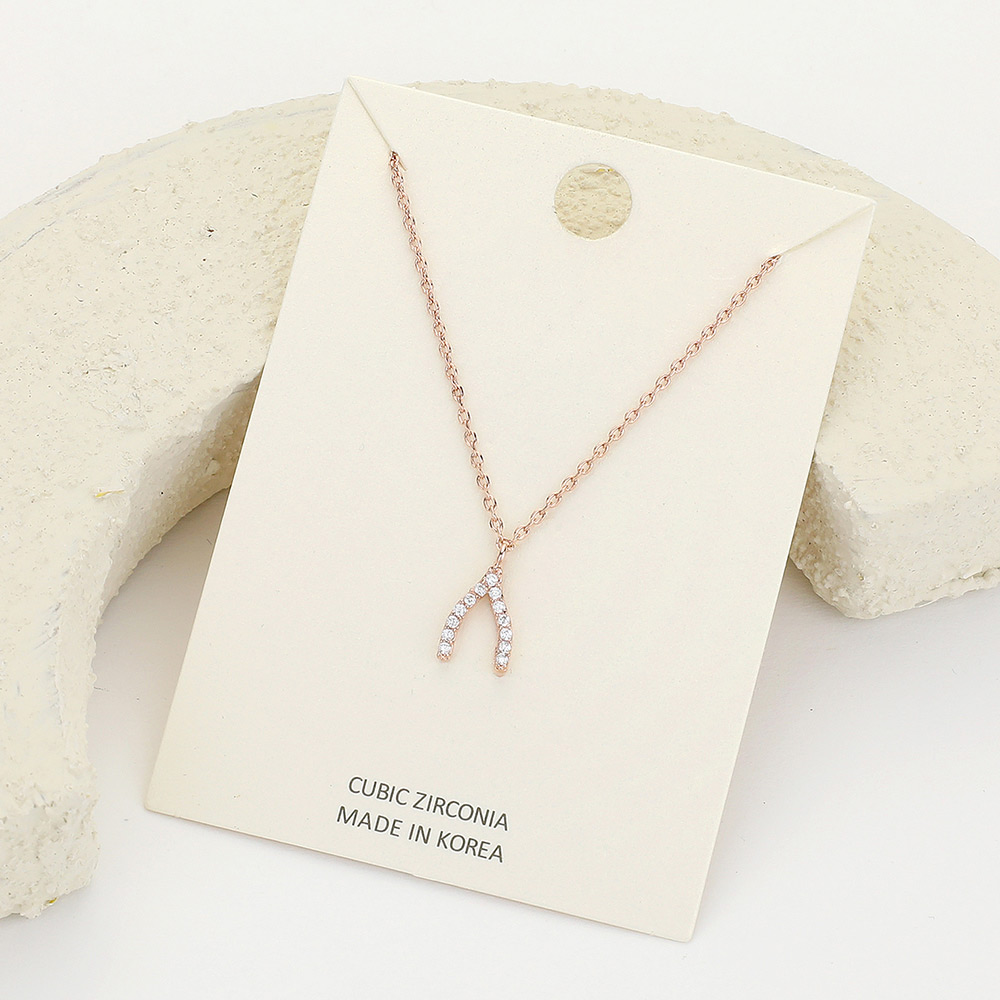 CZ Stone Paved Wishbone Pendant Necklace