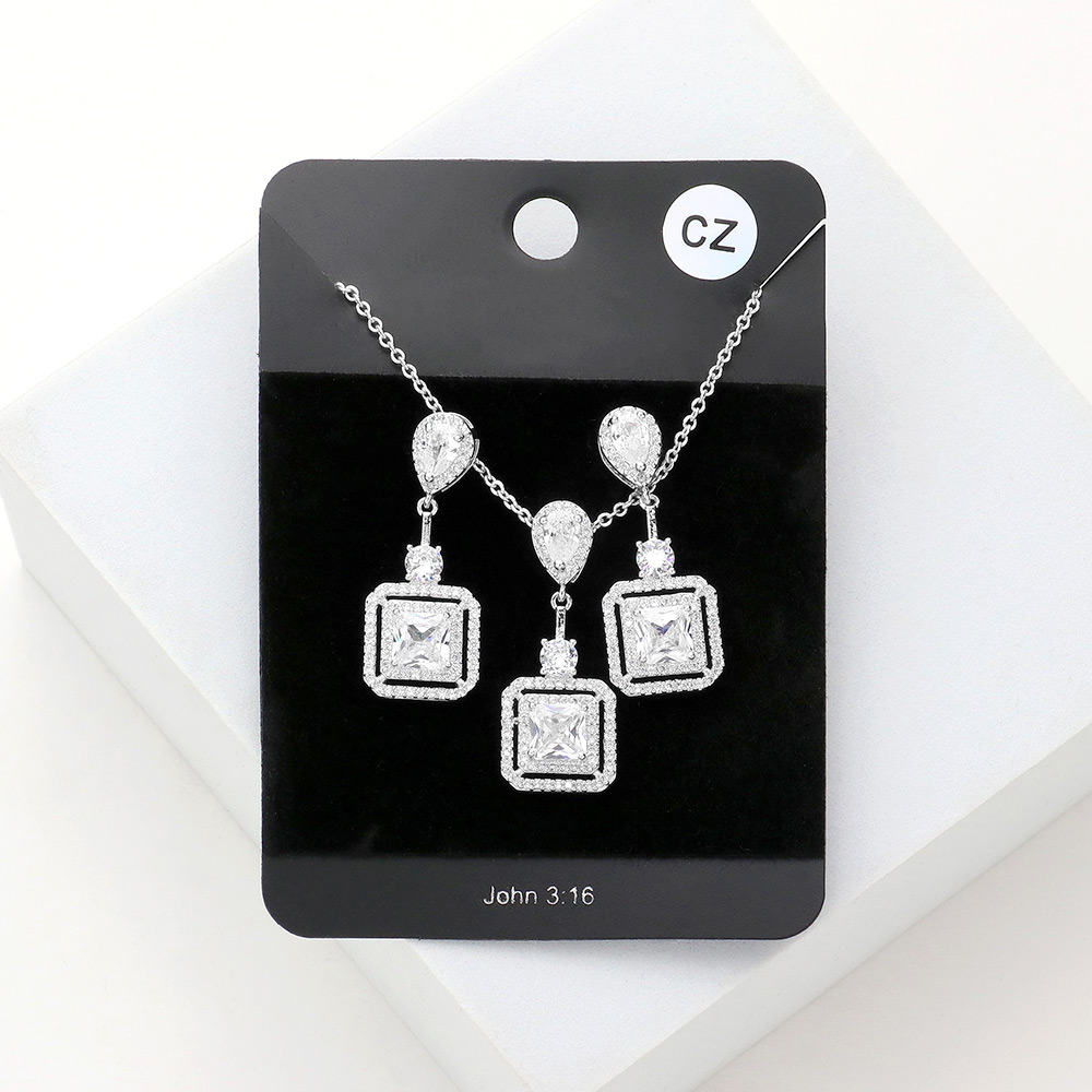 CZ Teardrop Square Link Pendant Necklace