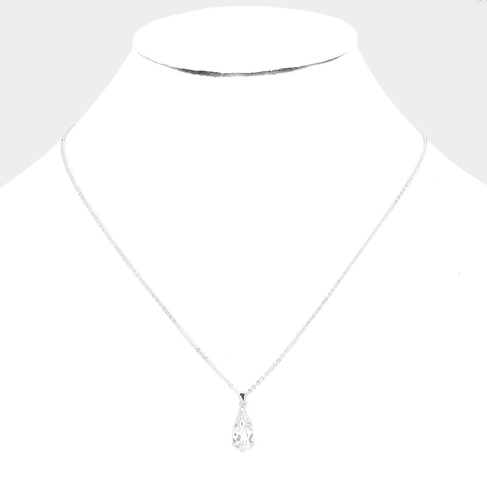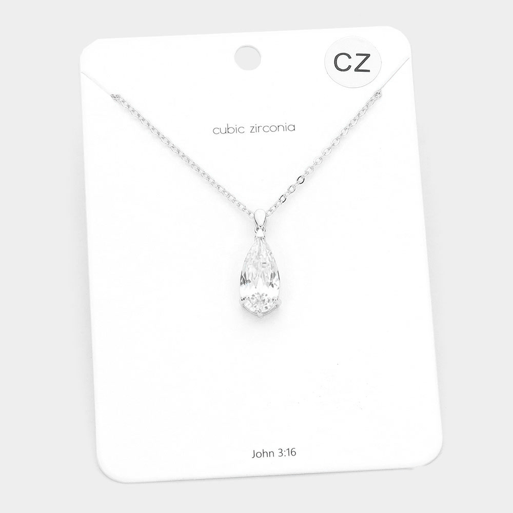 CZ Teardrop Stone Pendant Necklace