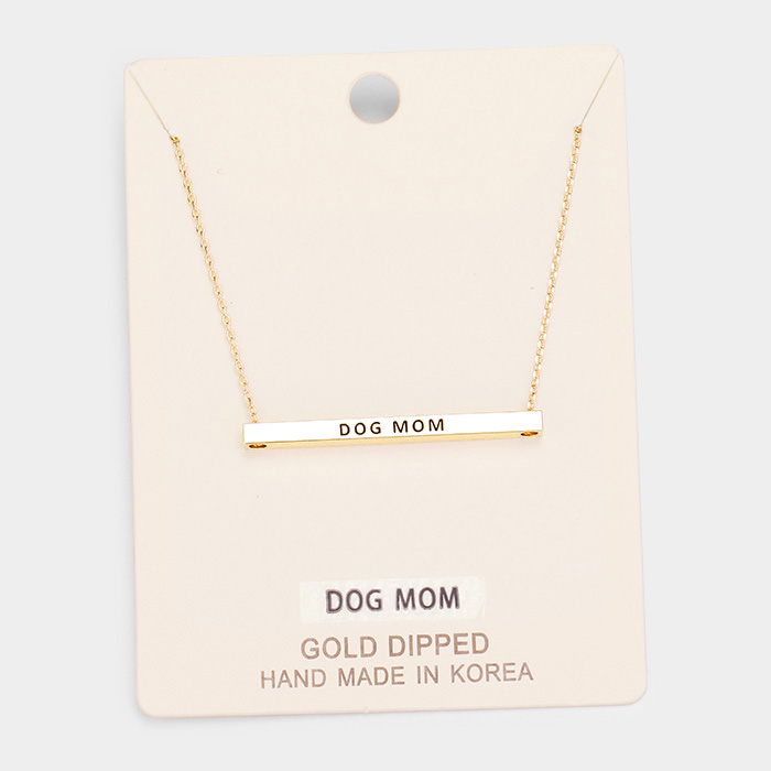 'Dog Mom' Horizontal Metal Bar Pendant Necklace