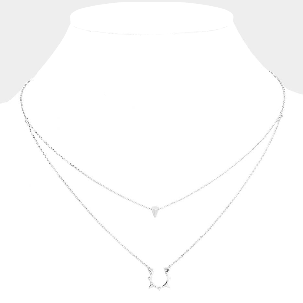 Double Layered Brass Metal Cone Pendant Necklace