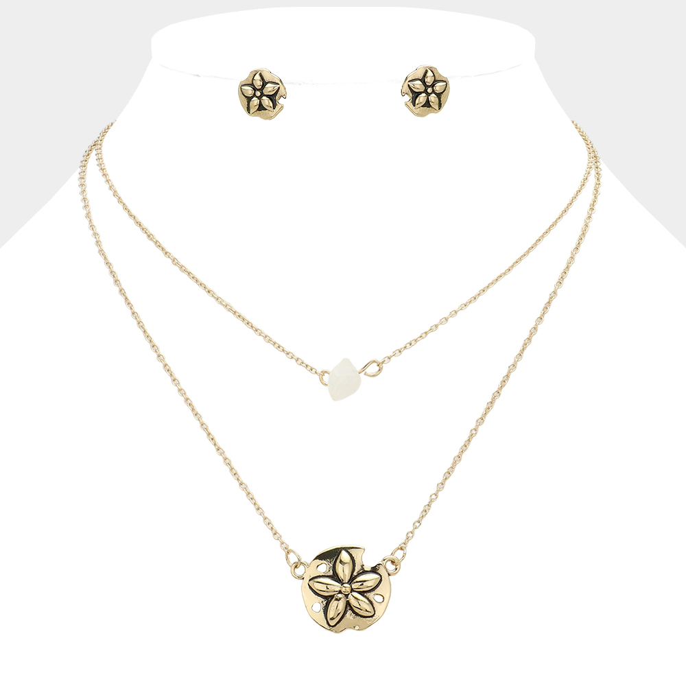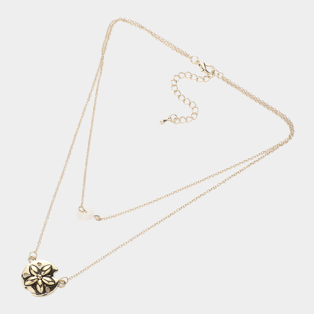 Double Layered Metal Sand Dollar & Natural Stone Pendant Necklace