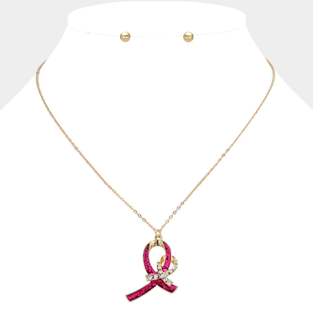 Glittered Pink Ribbon Pointed High Heel Stud Earrings