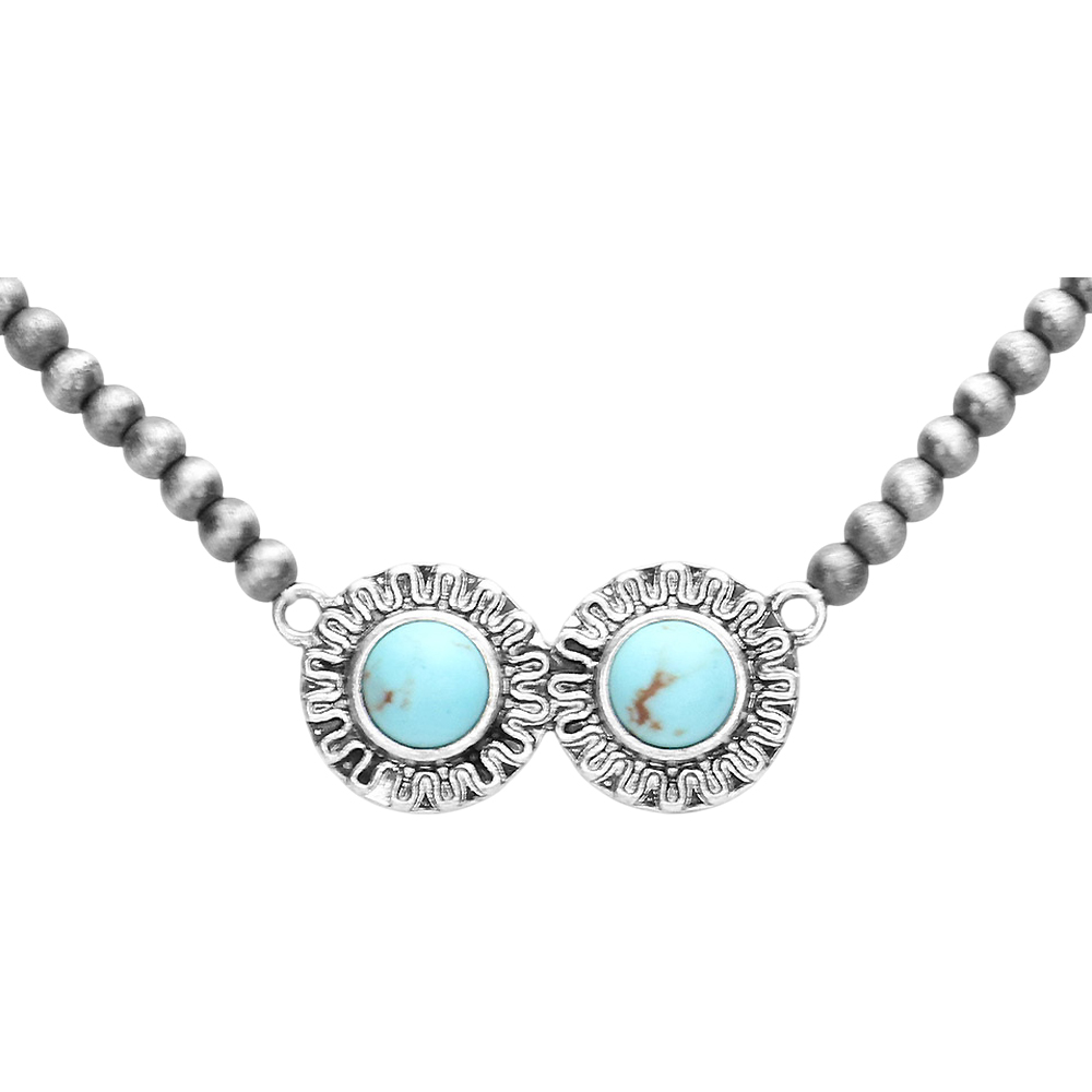 Double Round Turquoise Accented Antique Metal Pendant Necklace