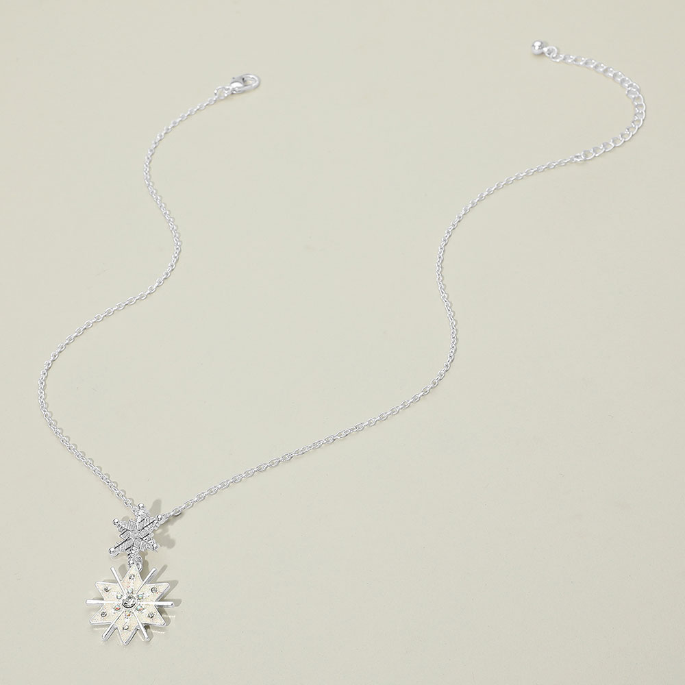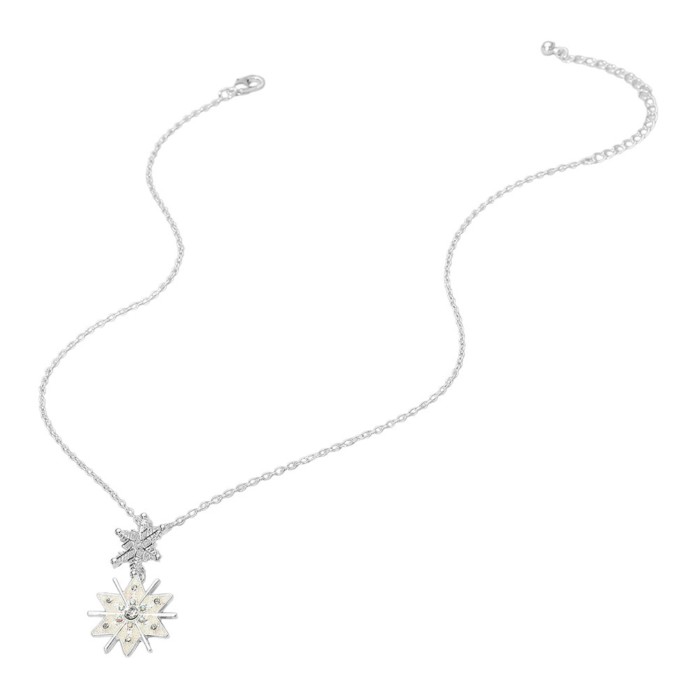 Details • Necklace Size : 18" + 3" L • Pendant Size : 1" X 1.75" • Delicate snowflake pendant necklace with sparkling accents, perfect for adding a touch of winter elegance to any outfit. Lightweight and versatile, ideal for holiday occasions or as a charming seasonal accessory. • Lead and Nickel Compliant