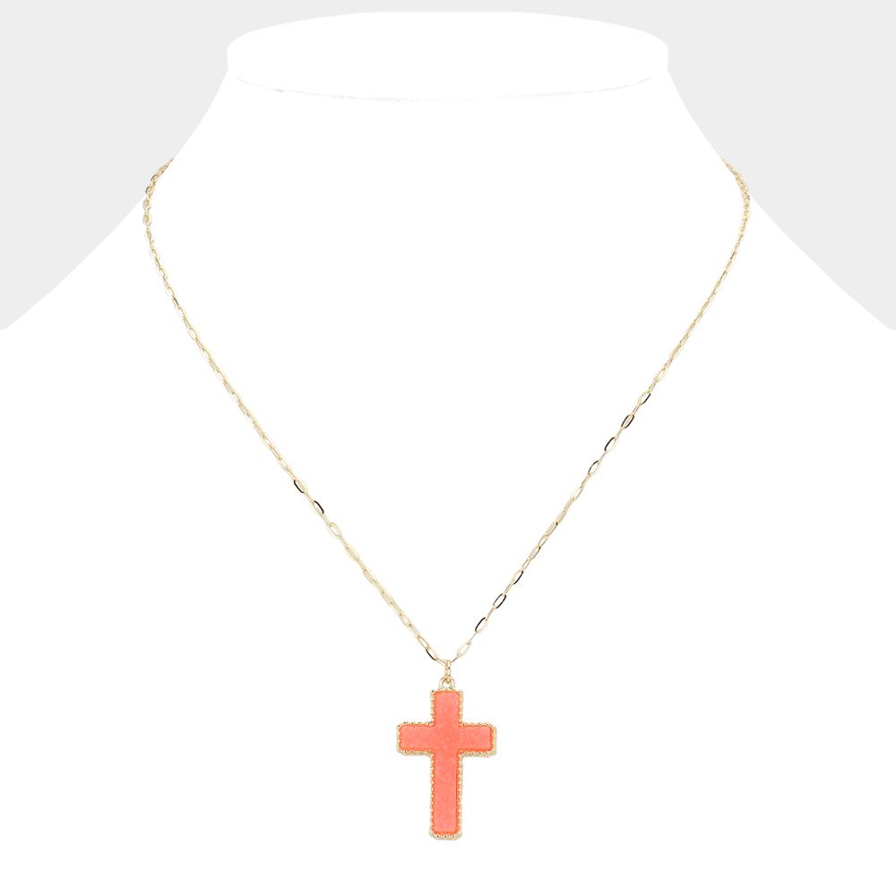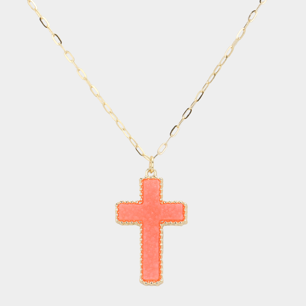 Druzy Cross Pendant Necklace