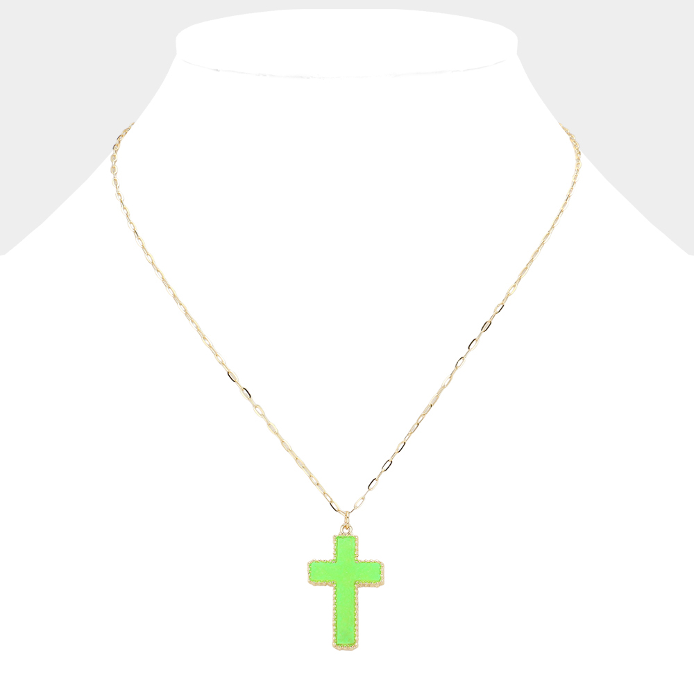 Oversized Stone Embellished Cross Pendant Accented Abstract Metal Wire Statement Necklace