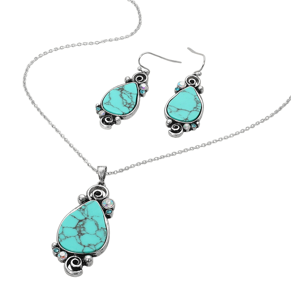 Details • Necklace Size : 18" + 3" L • Pendant Size : 0.8" X 2.2" • Beautiful teardrop pendant necklace and matching earrings featuring delicate accents for a timeless look. Perfect jewelry set for adding elegance to special occasions or gifting to someone special. • Lead and Nickel Compliant