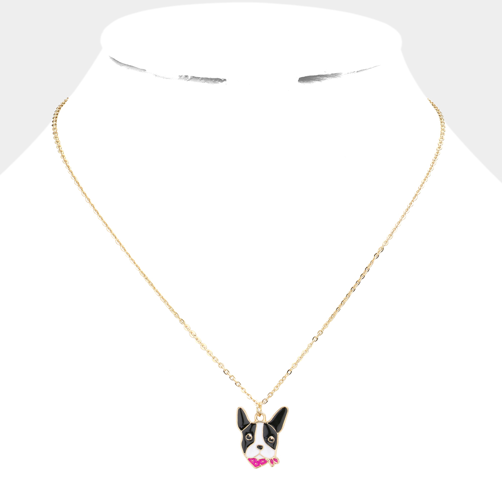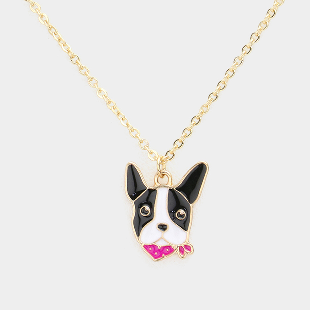 Enamel Metal French Bulldog Pendant Necklace