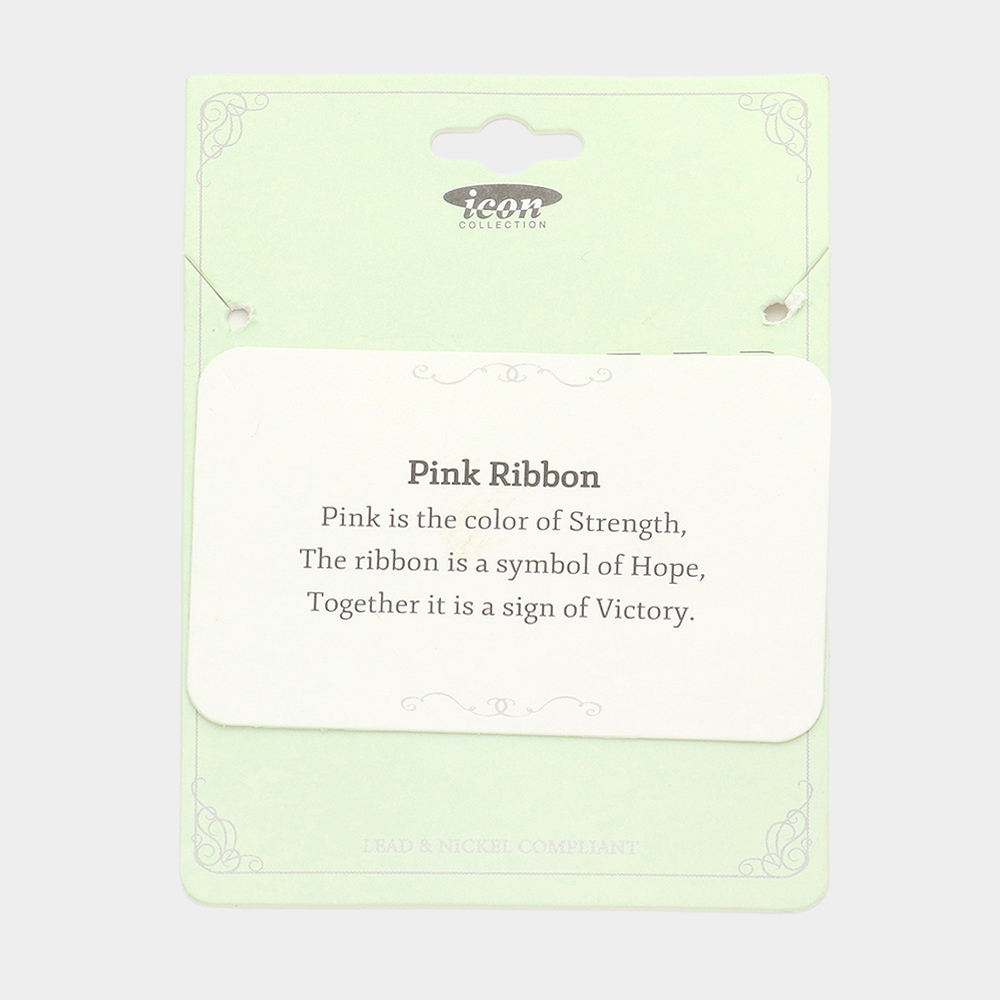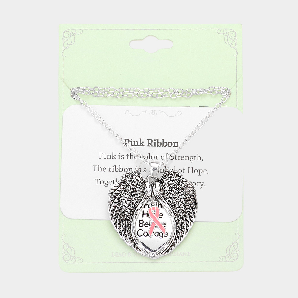 Enamel Pink Ribbon Pointed Angel Wings Pendant Necklace