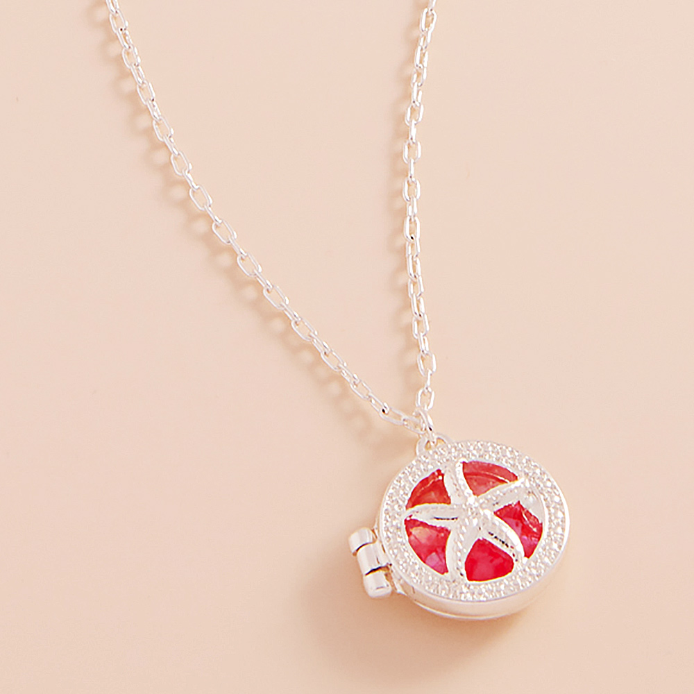 Details • Necklace Size : 17.25" + 3" L • Pendant Size : 0.6" X 0.6" • Charming round locket necklace featuring a starfish cutout over a textured background. A unique piece ideal for beach lovers and those seeking ocean-themed accessories. • Lead and Nickel Compliant