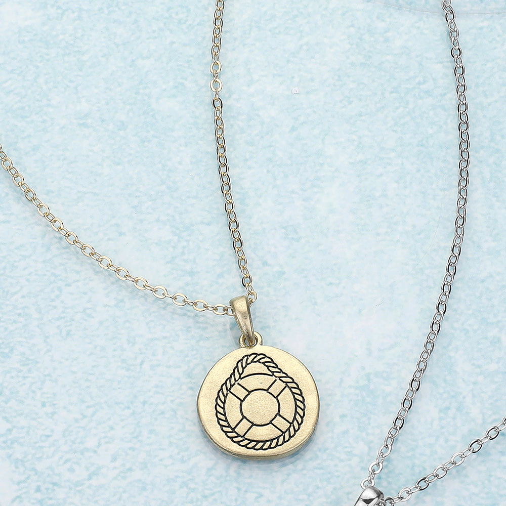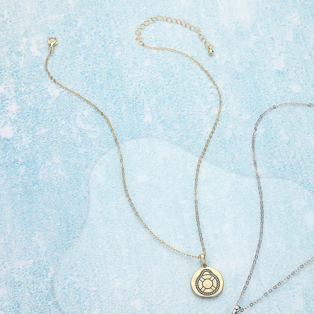Details • Necklace Size : 16" + 3" L • Decor Size : 0.75" X 0.75" • Stay anchored in style with this silver lifebuoy pendant necklace. Features a round charm with a nautical design, perfect for ocean lovers and coastal-themed outfits or gifts. • Lead and Nickel Compliant