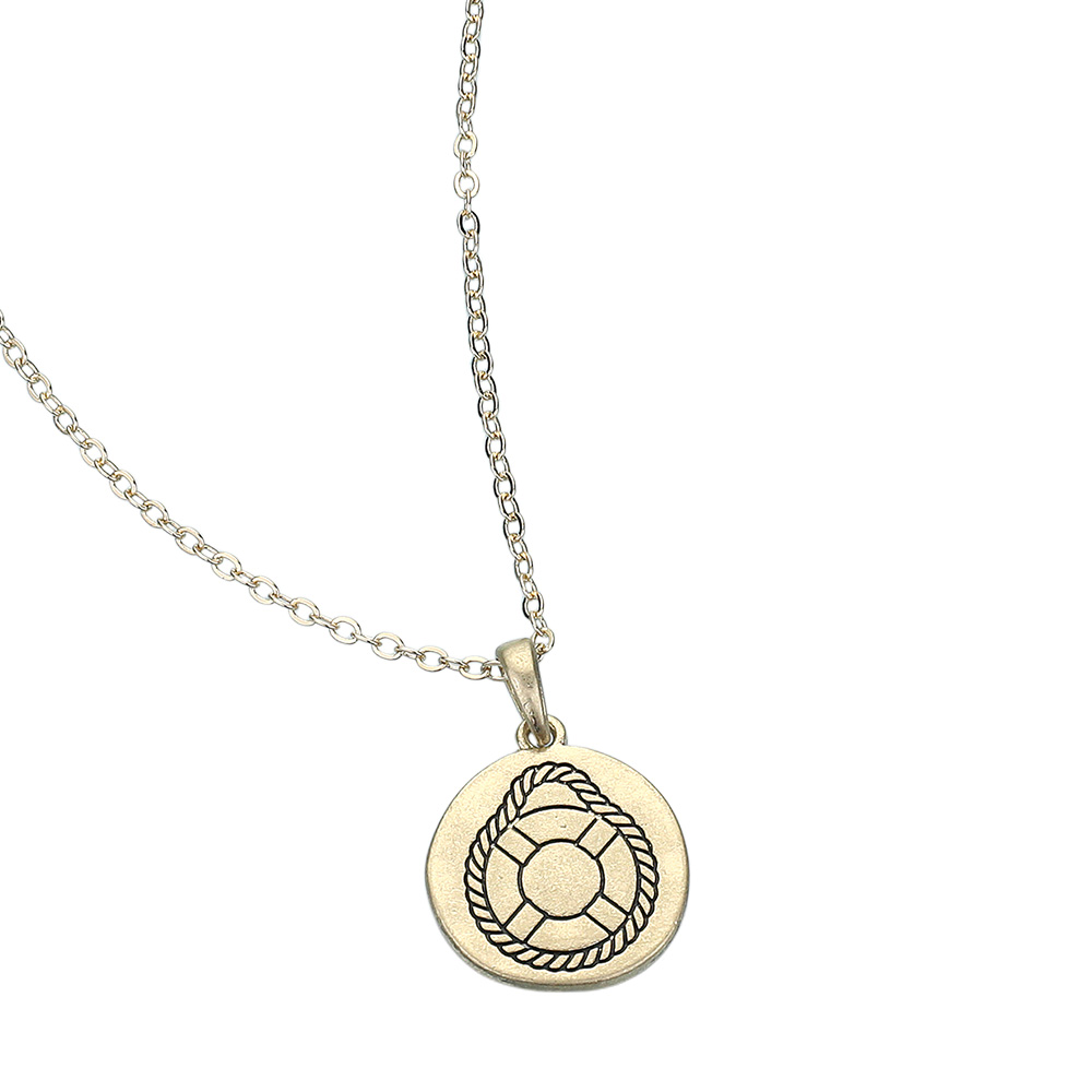 Engraved Life Preserver Metal Disc Pendant Necklace