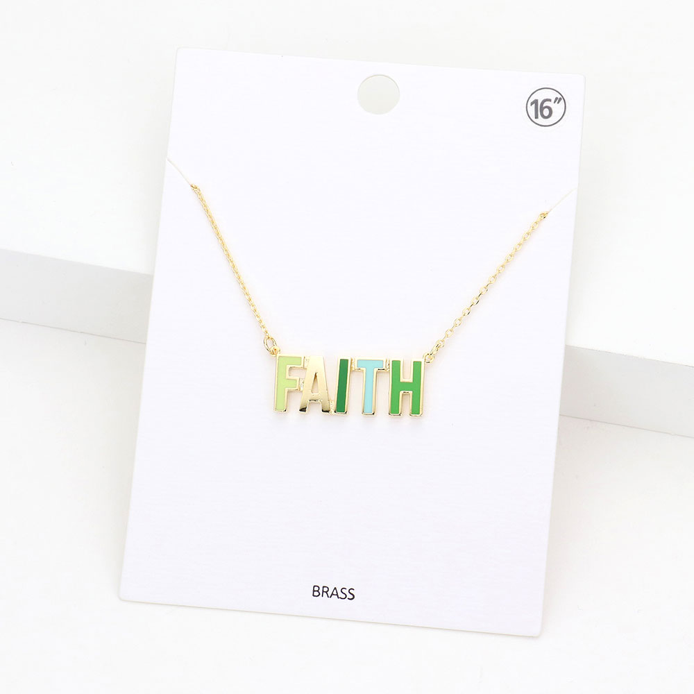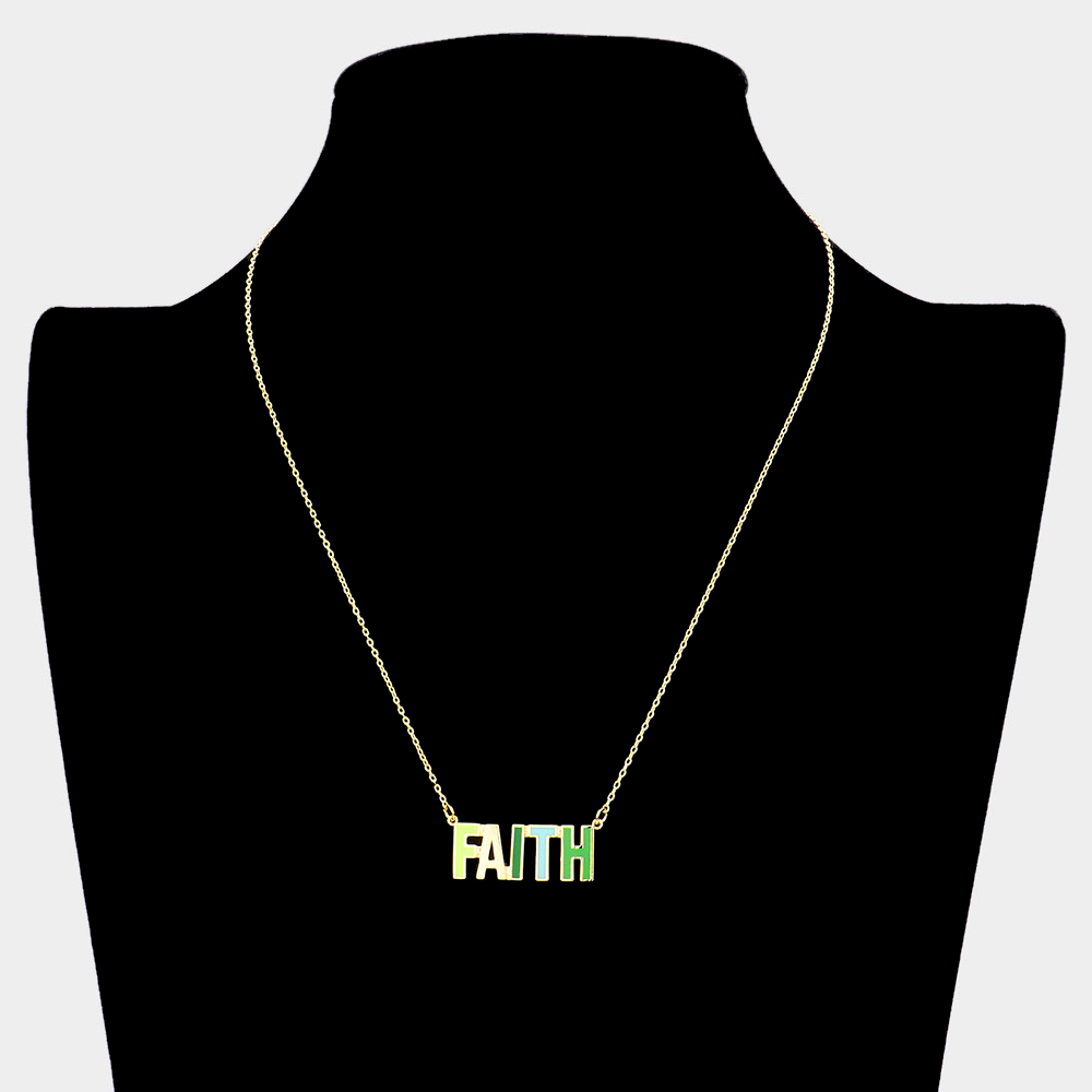 FAITH Brass Metal Enamel Message Pendant Necklace