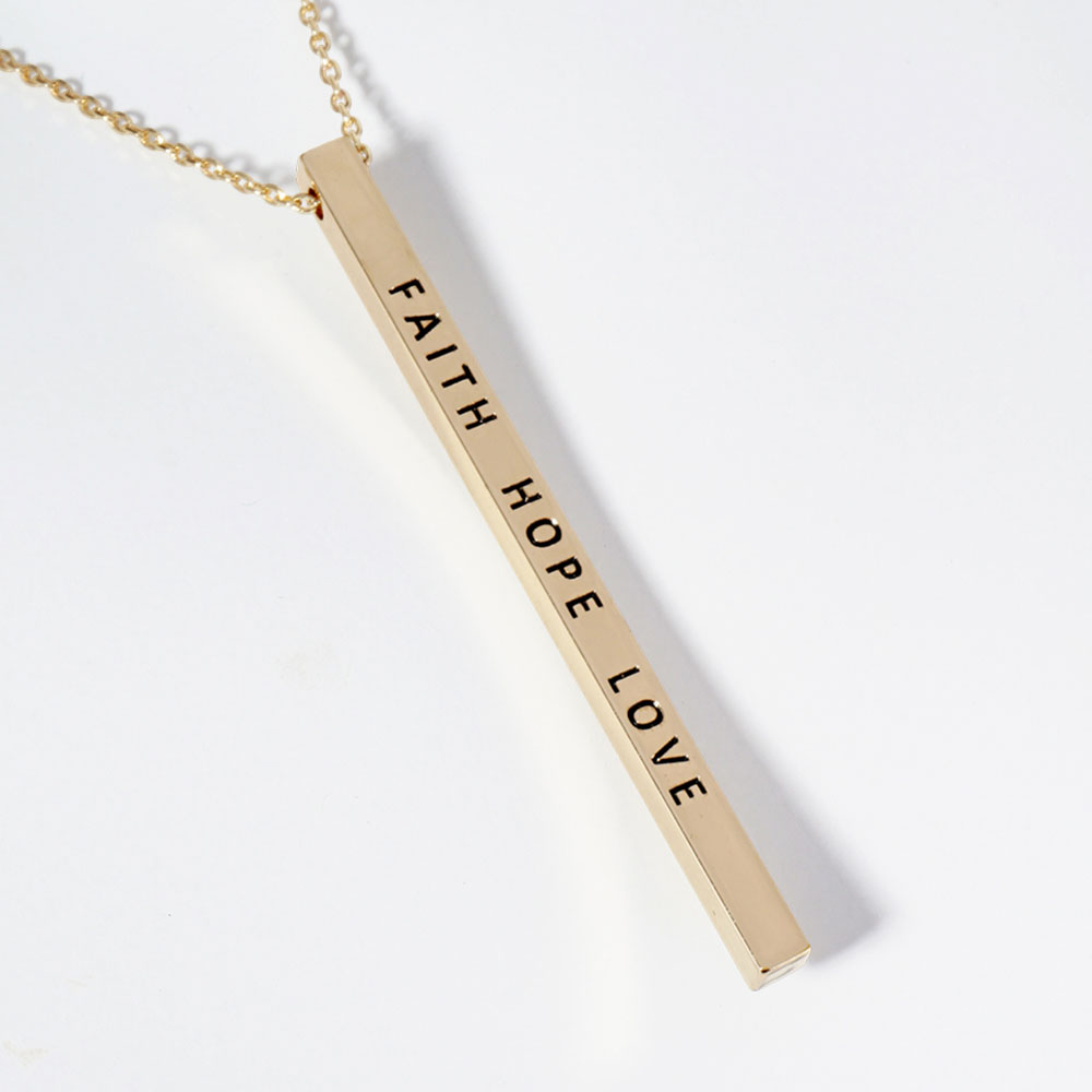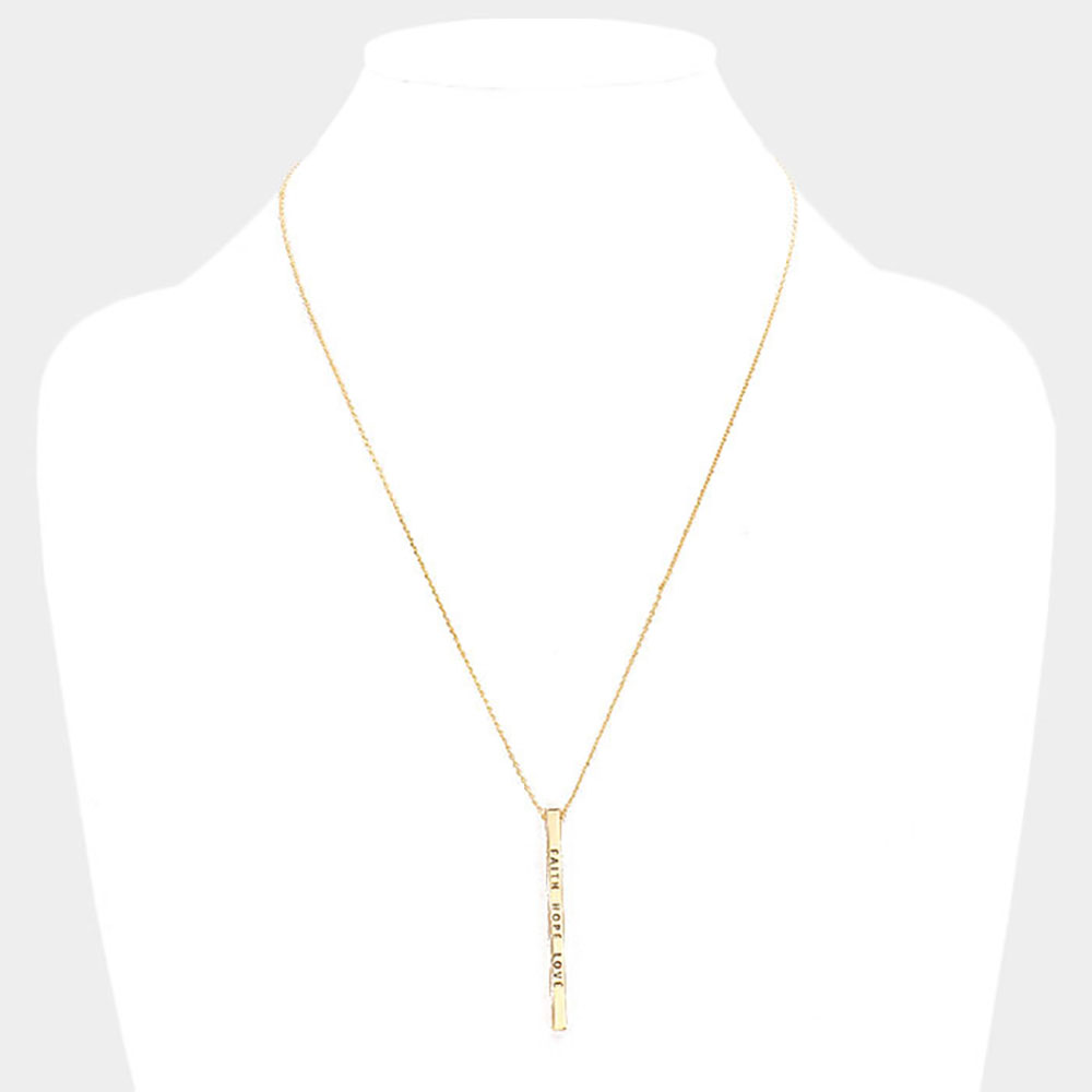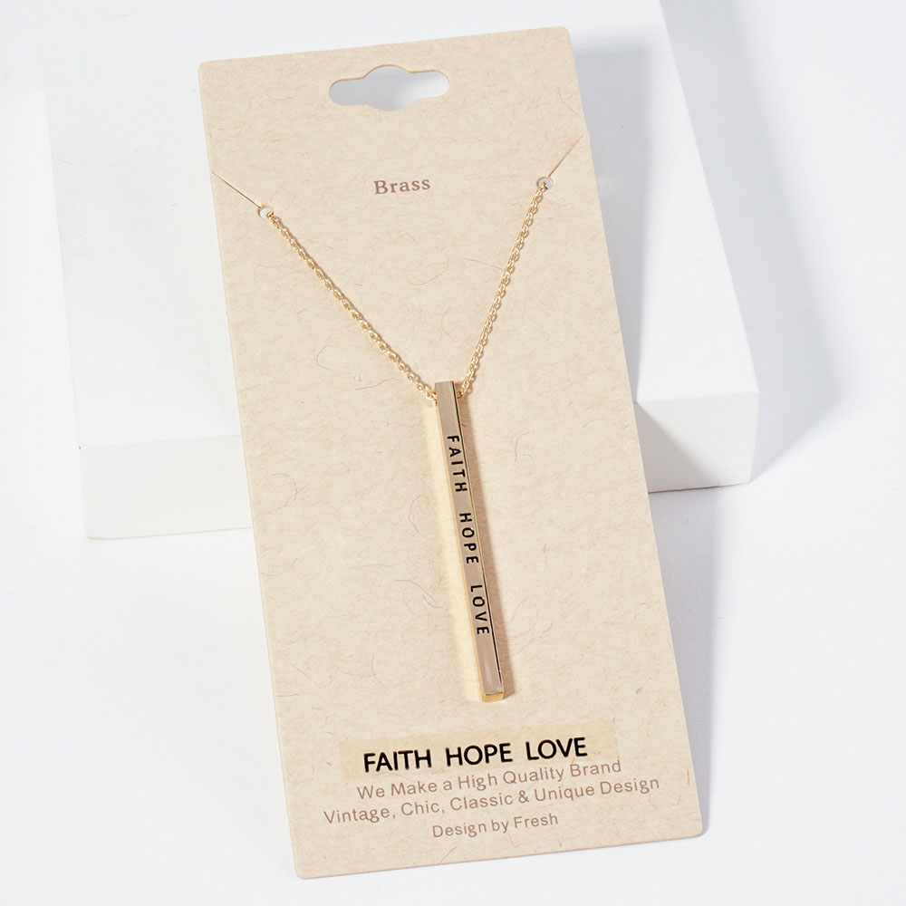FAITH HOPE LOVE Brass Metal Bar Pendant Necklace