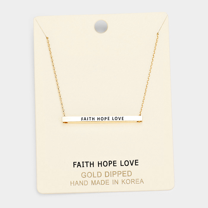 'Faith Hope Love' Horizontal Metal Bar Pendant Necklace