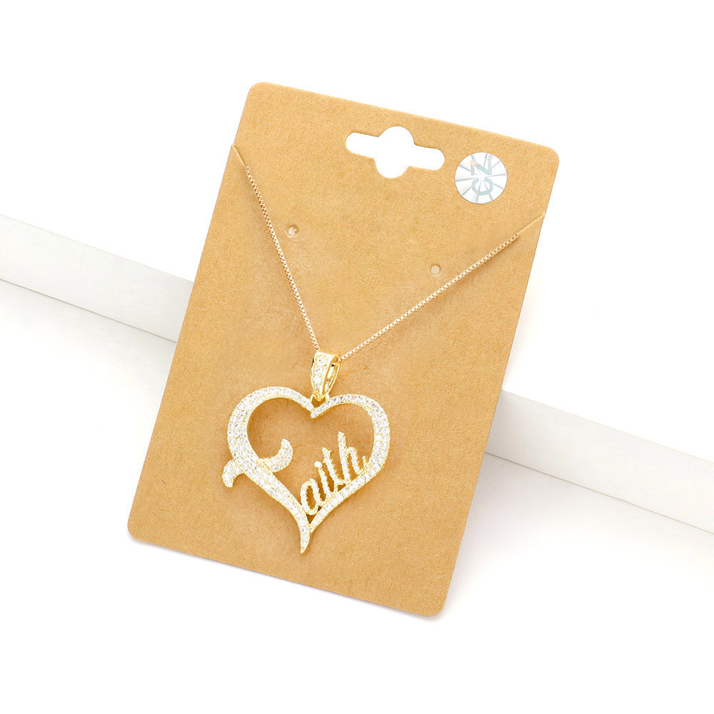 faith Message CZ Open Heart Pendant Necklace
