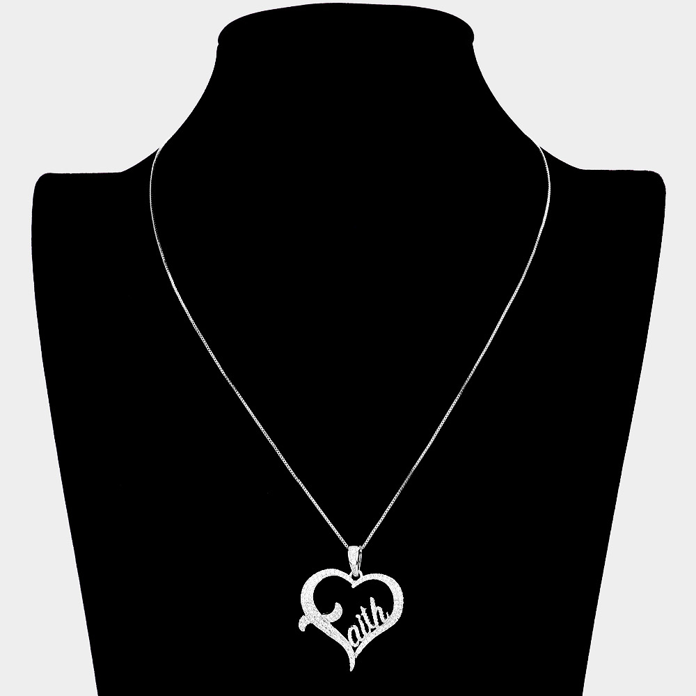 faith Message CZ Open Heart Pendant Necklace