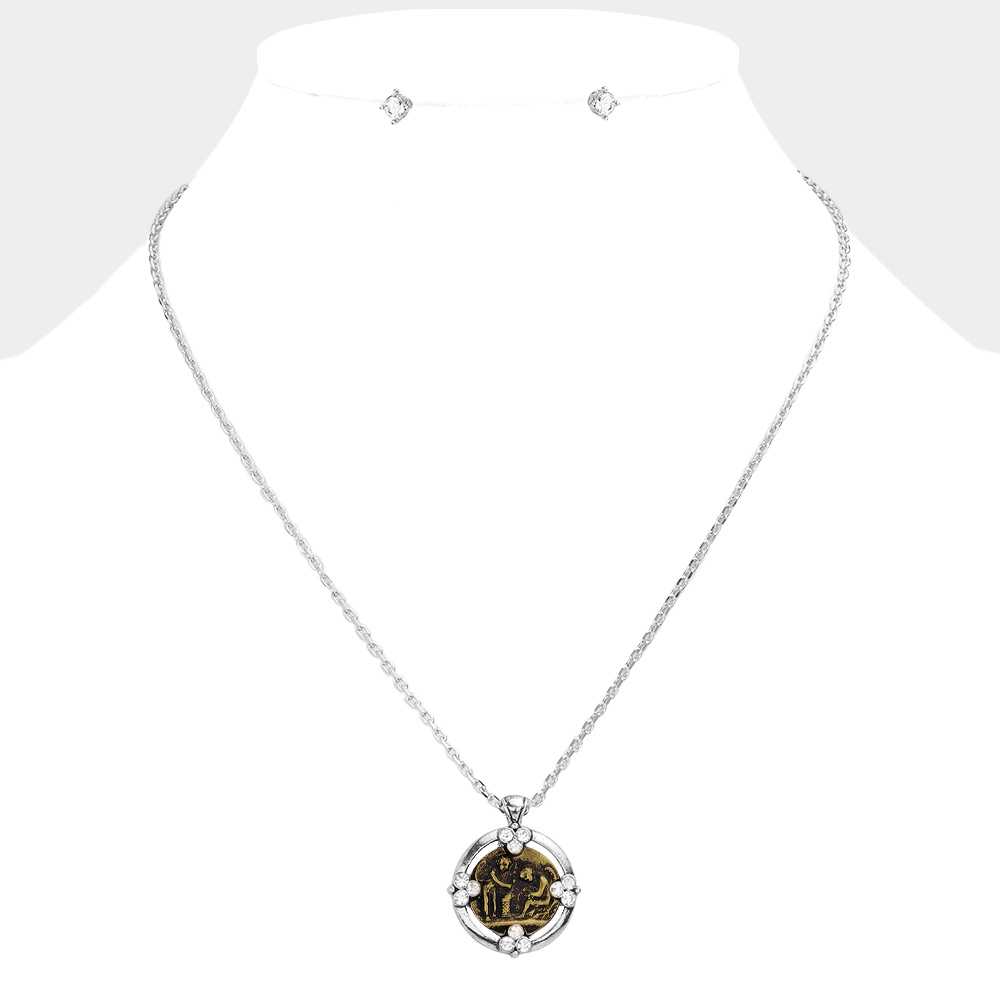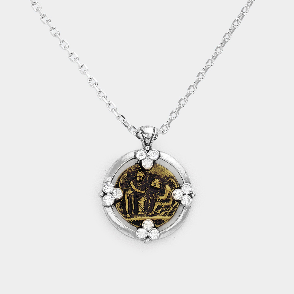 Rhinestone Embellished Metal Cross Pendant Necklace