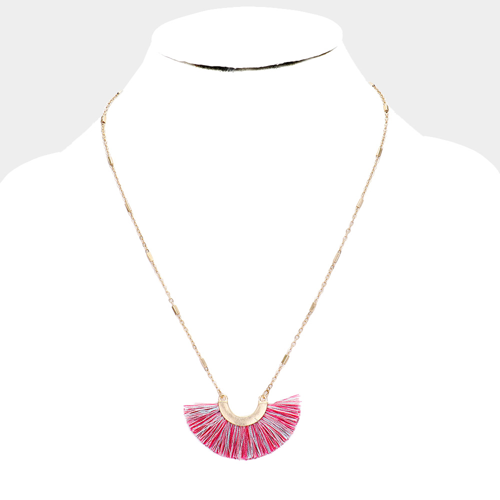Game Day Beaded Open Hexagon Raffia Tassel Link Dangle Earrings