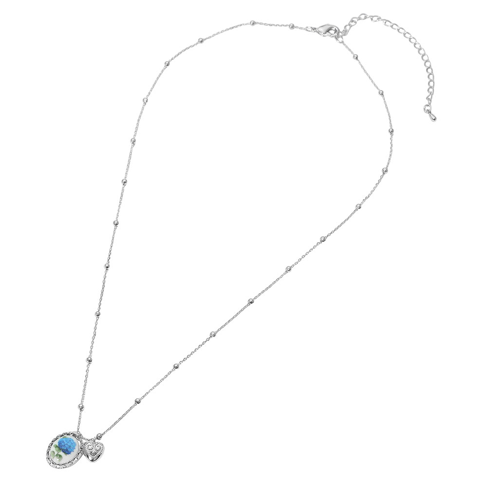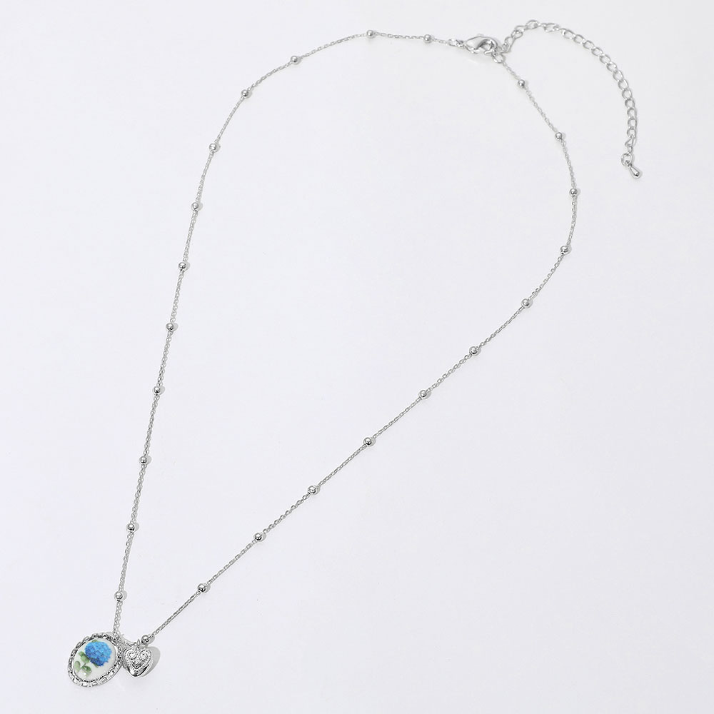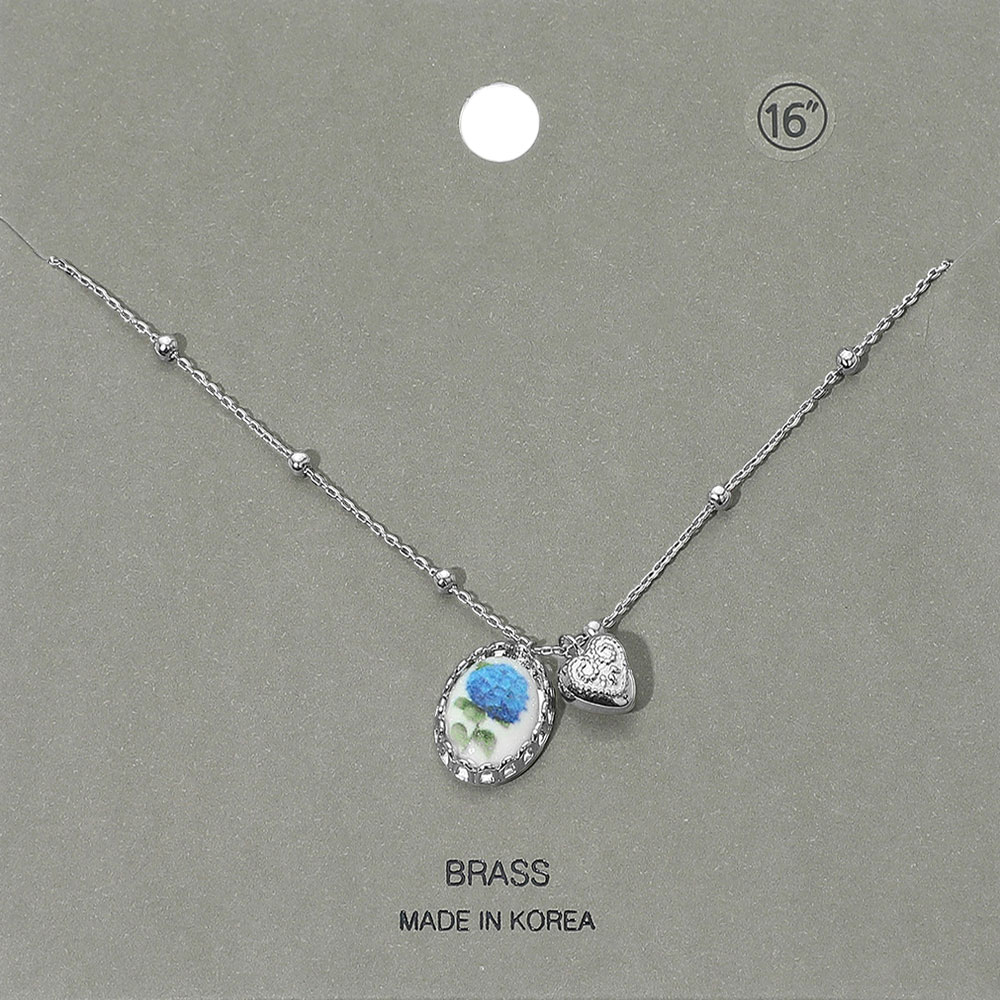 Floral Ceramic Oval Heart Pendant Bead Chain Necklace