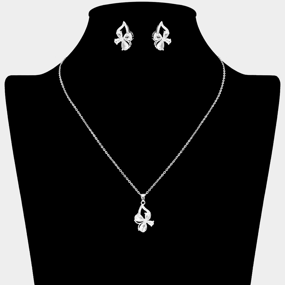 Marquise Stone Cluster Butterfly Drop Accent Rhinestone Paved Necklace