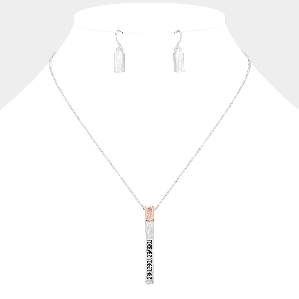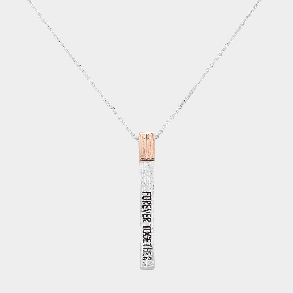 "Forever Together" Metal Bar Pendant Necklace
