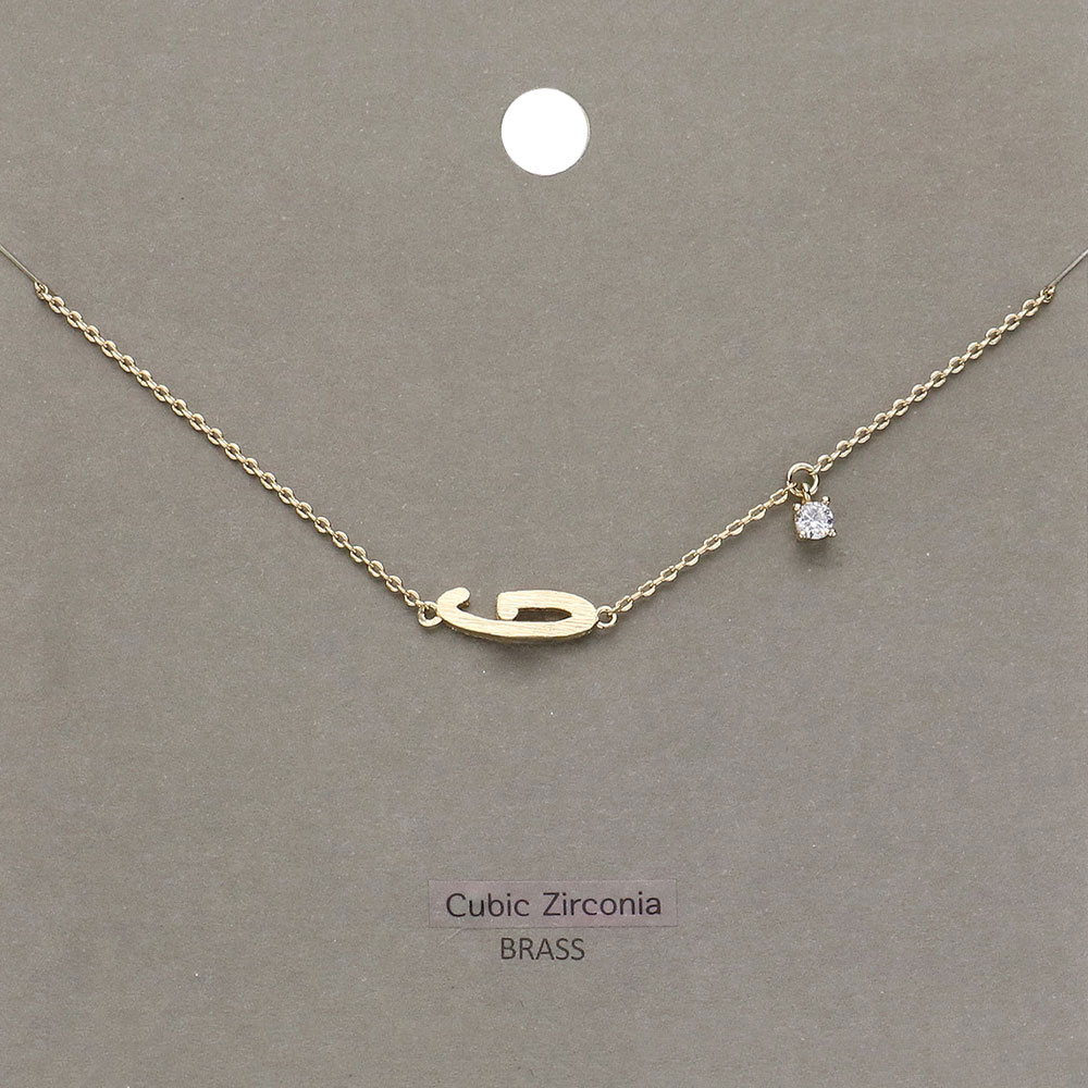 D Brass Metal Cubic Zirconia Initial Monogram Pendant Necklace