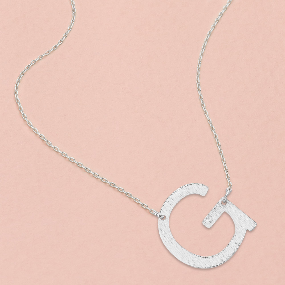 G- White Gold Dipped Initial Monogram Pendant Necklace