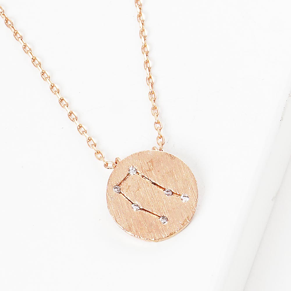Libra Gold Dipped CZ Zodiac Sign Metal Disc Pendant Necklace