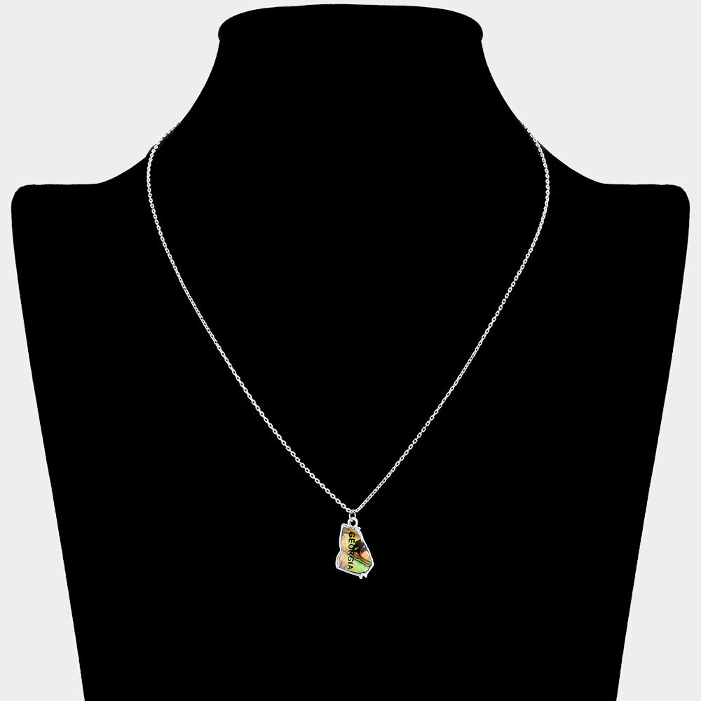Antique Metal Abalone Pointed Palm Tree Dangle Earrings