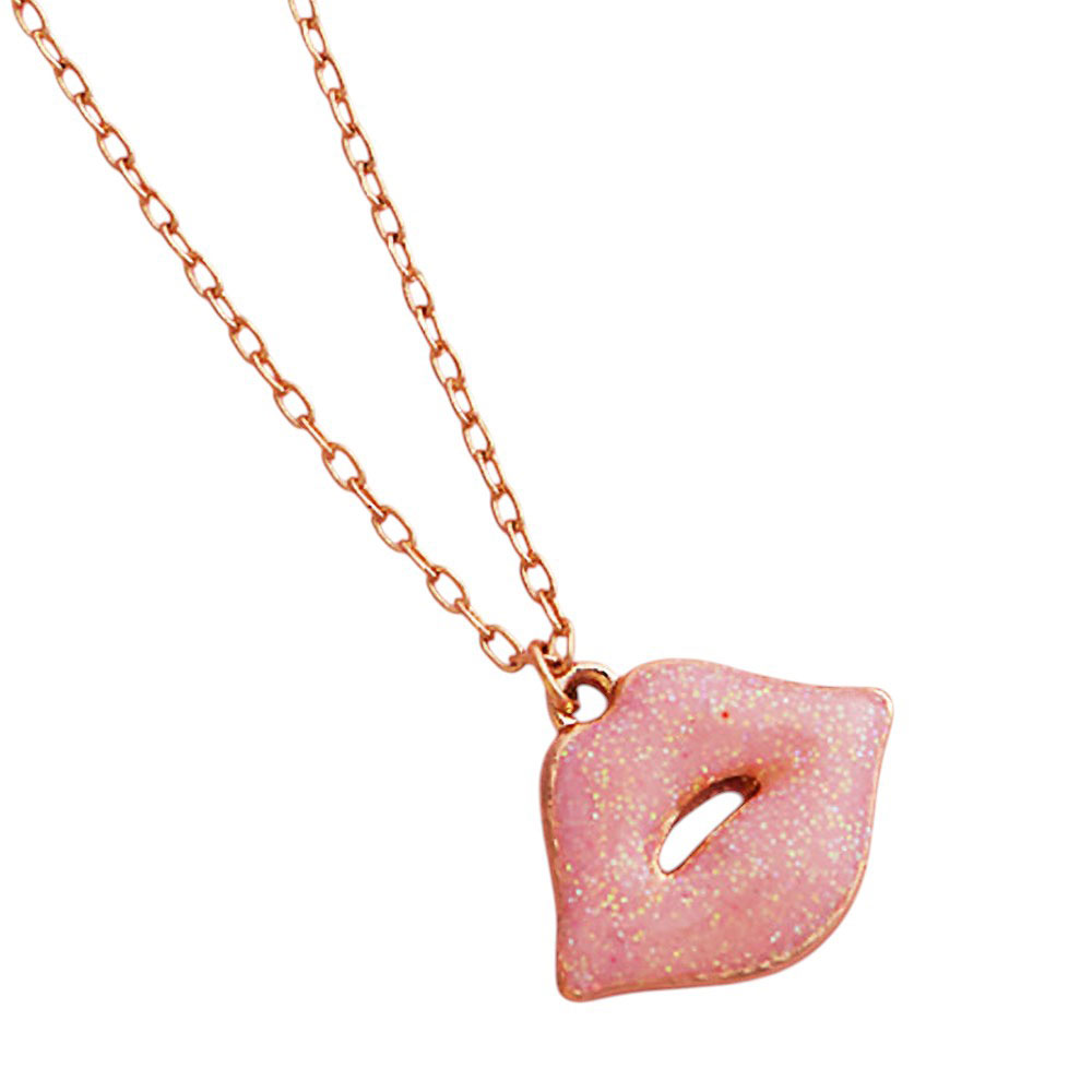 Glittered Lips Pendant Necklace