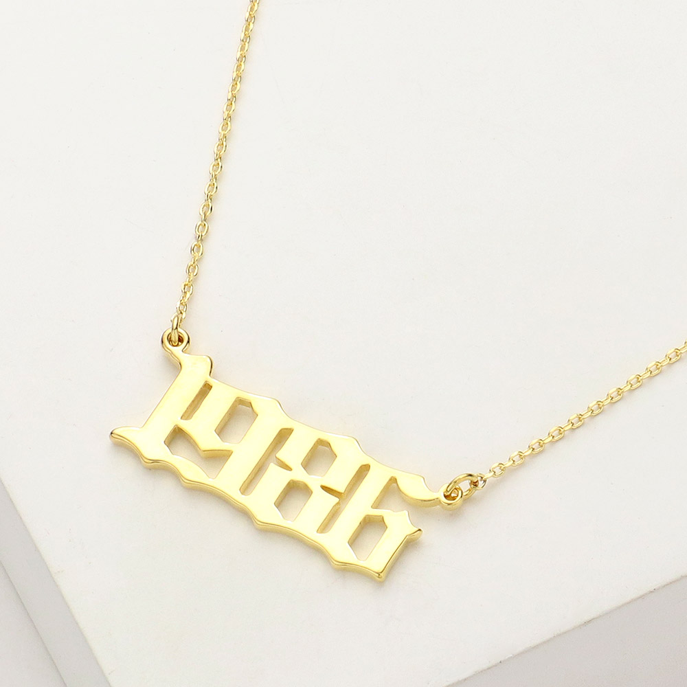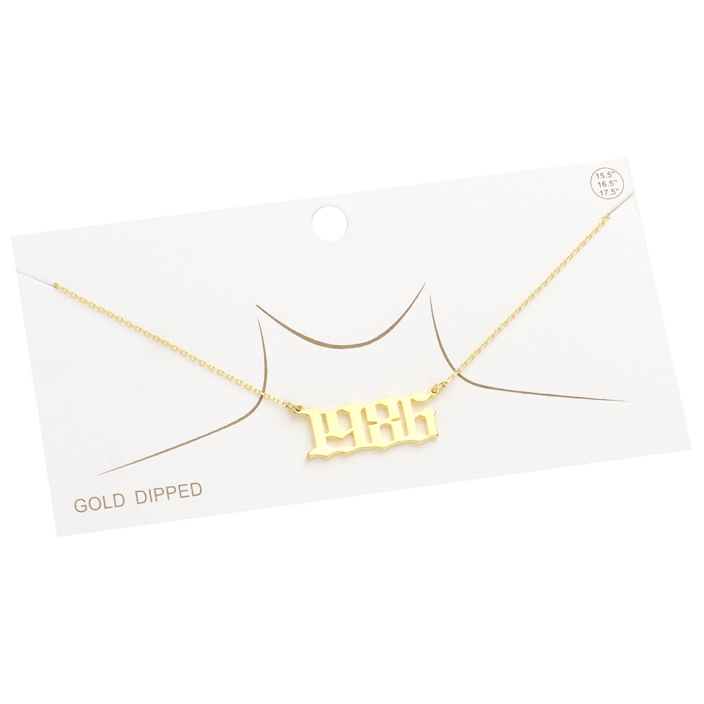 Details • Necklace Size : 15.5" + 2" L • Pendant Size : 1" X 0.4" • A bold “1986” pendant in old English font — a stylish and meaningful piece perfect for milestone birthdays or nostalgic fashion statements. • Lead and Nickel Compliant • Made In Korea • Gold Dipped