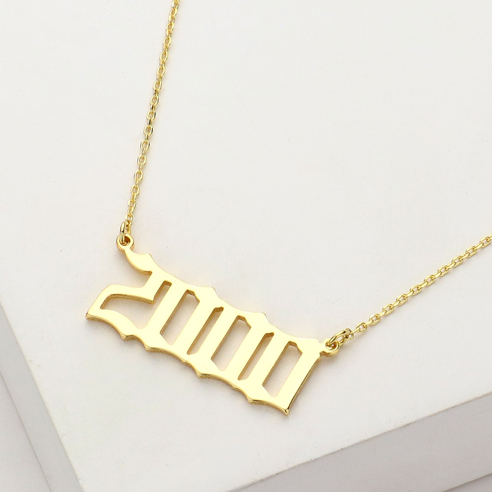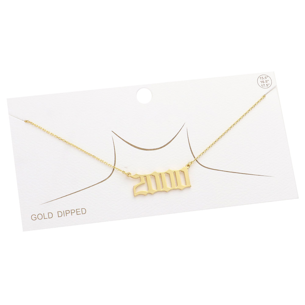 Details • Necklace Size : 15.5" + 2" L • Pendant Size : 1" X 0.4" • A bold “2000” pendant in old English font — a stylish and meaningful piece perfect for milestone birthdays or nostalgic fashion statements. • Lead and Nickel Compliant • Made In Korea • Gold Dipped
