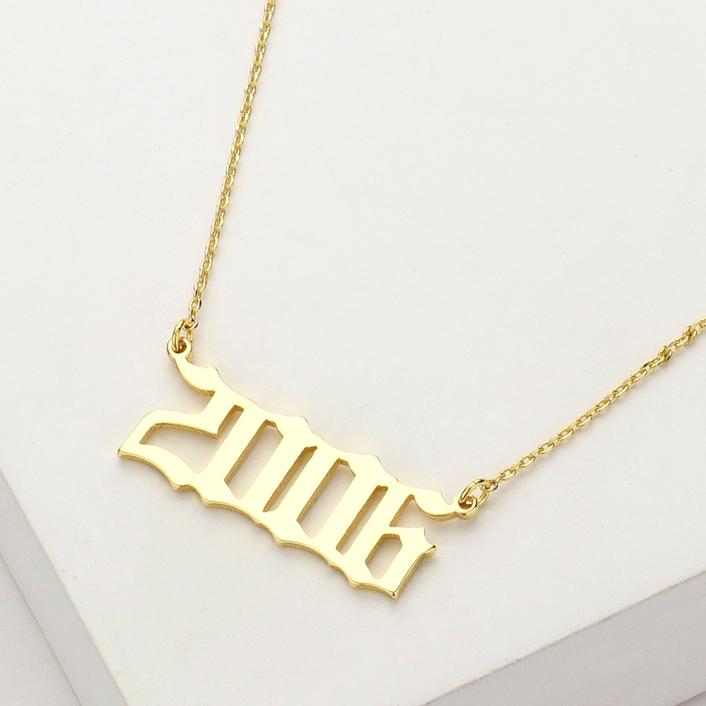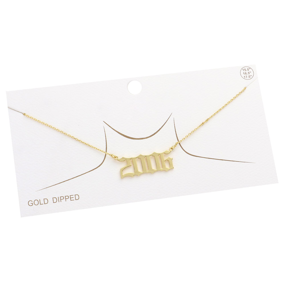 Details • Necklace Size : 15.5" + 2" L • Pendant Size : 1" X 0.4" • A bold “2006” pendant in old English font — a stylish and meaningful piece perfect for milestone birthdays or nostalgic fashion statements. • Lead and Nickel Compliant • Made In Korea • Gold Dipped