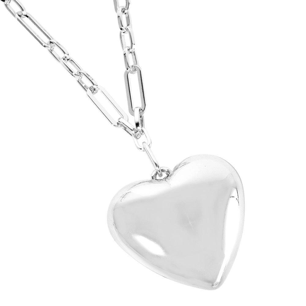 Gold Dipped Bold Puffy Heart Pendant Paperclip Link Chain Necklace