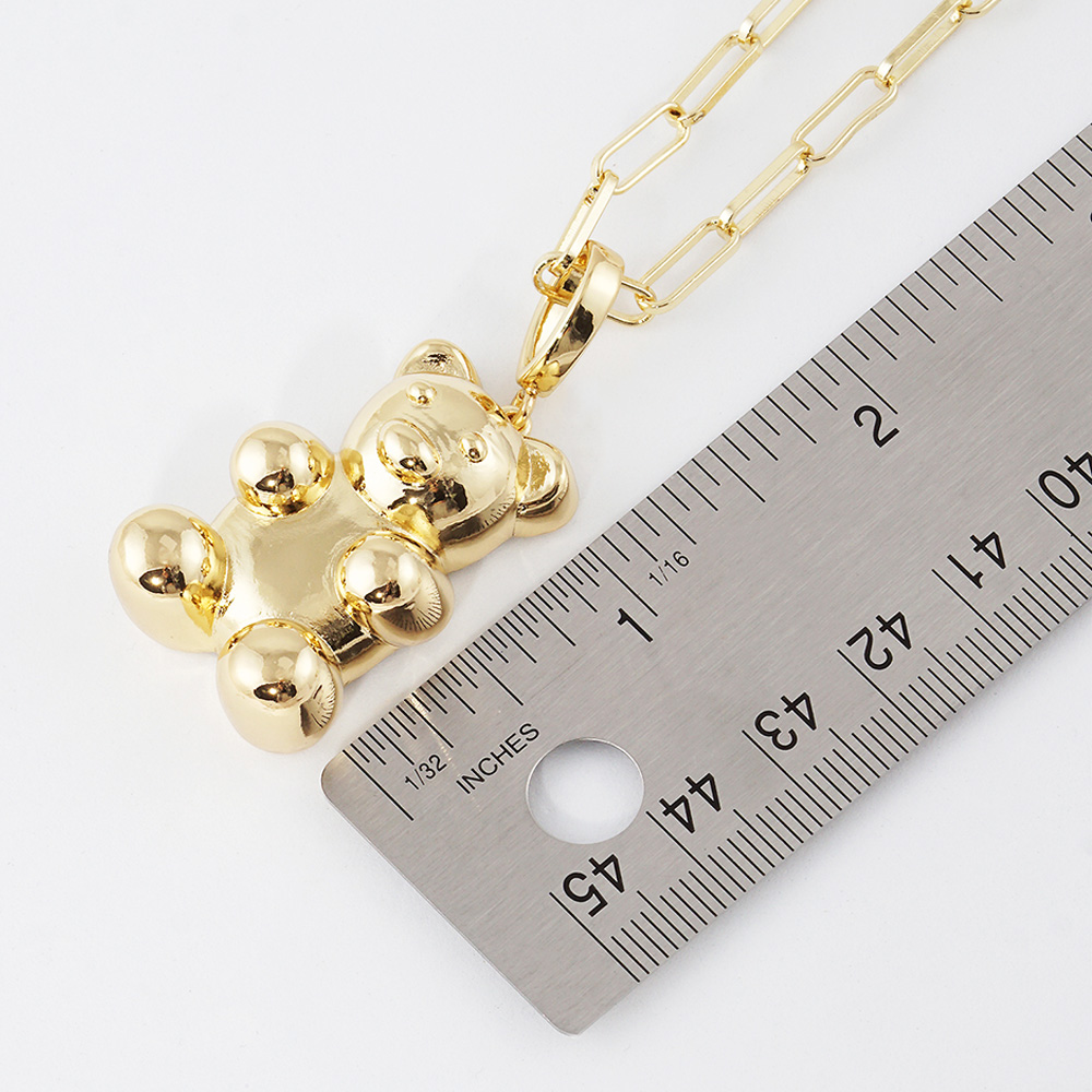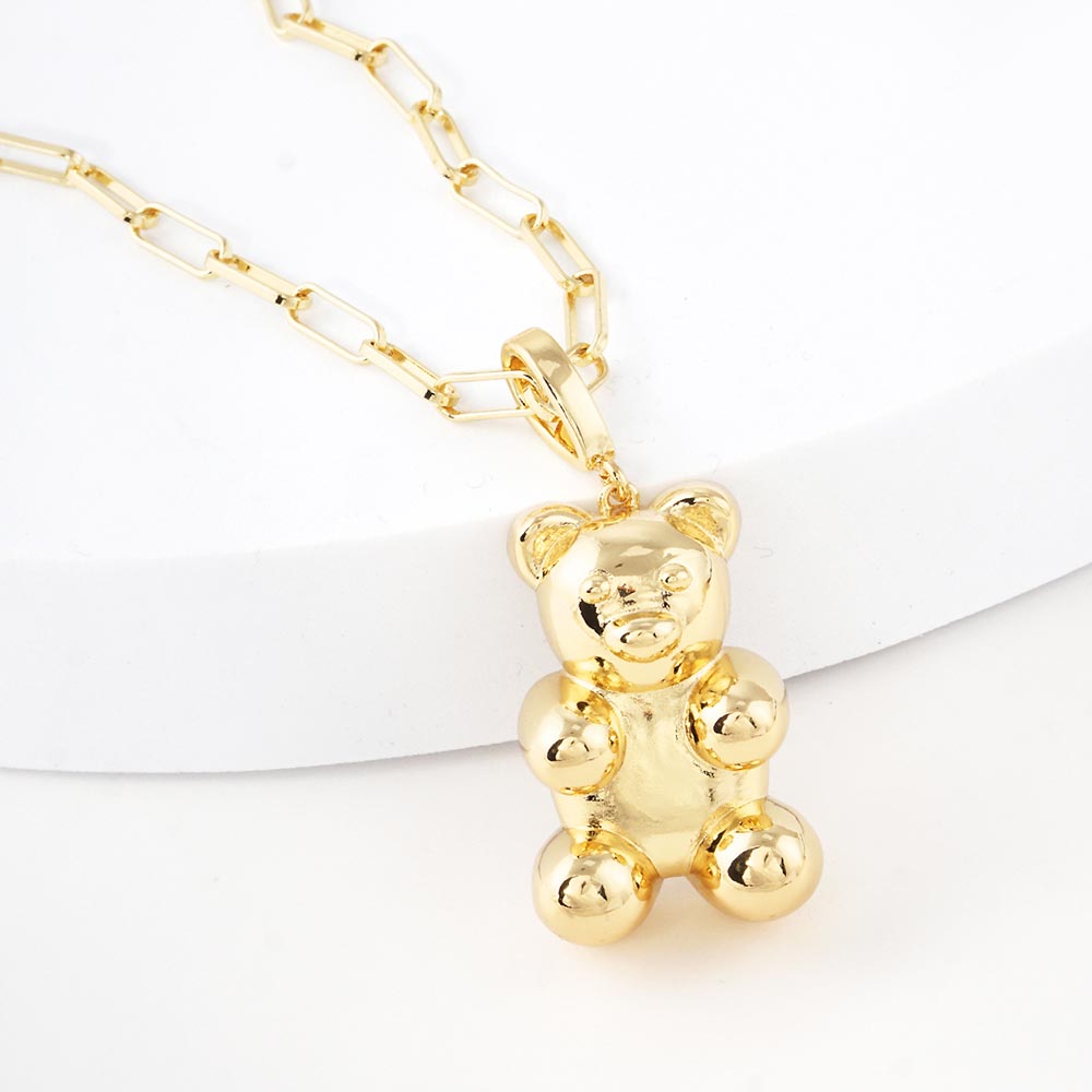 Gold Dipped Brass Metal Bear Pendant Necklace