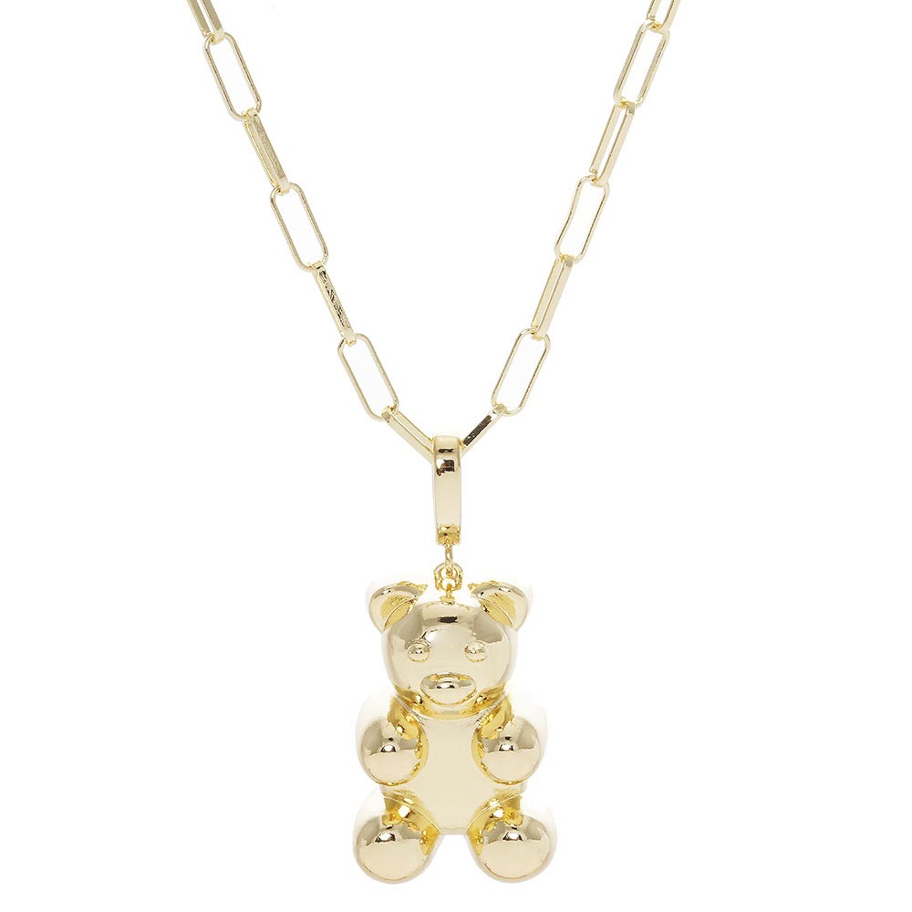 Gold Dipped CZ Embellished Metal Bear Pendant Necklace