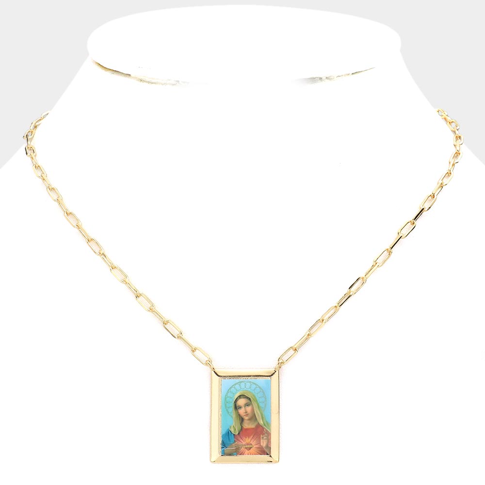 Gold Dipped Brass Metal Virgin Mary Pendant Necklace