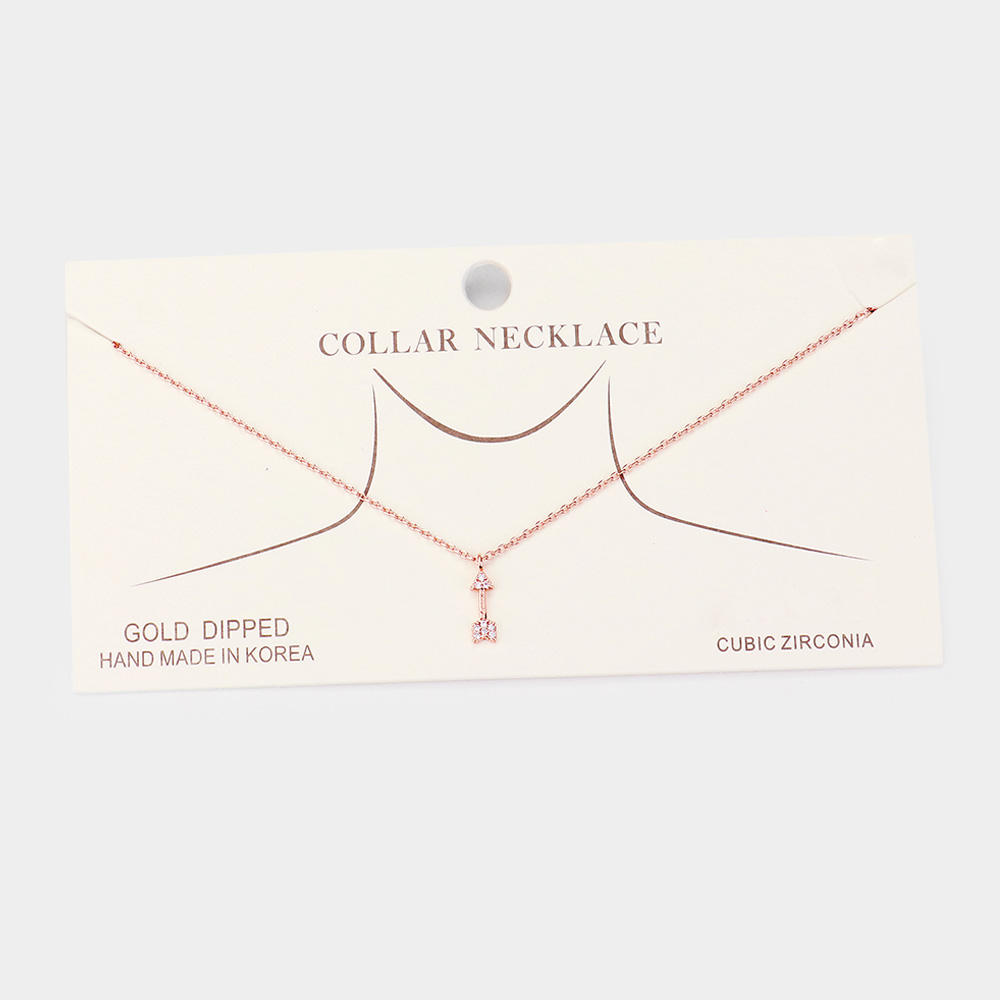 Gold Dipped Cubic Zirconia Arrow Pendant Necklace